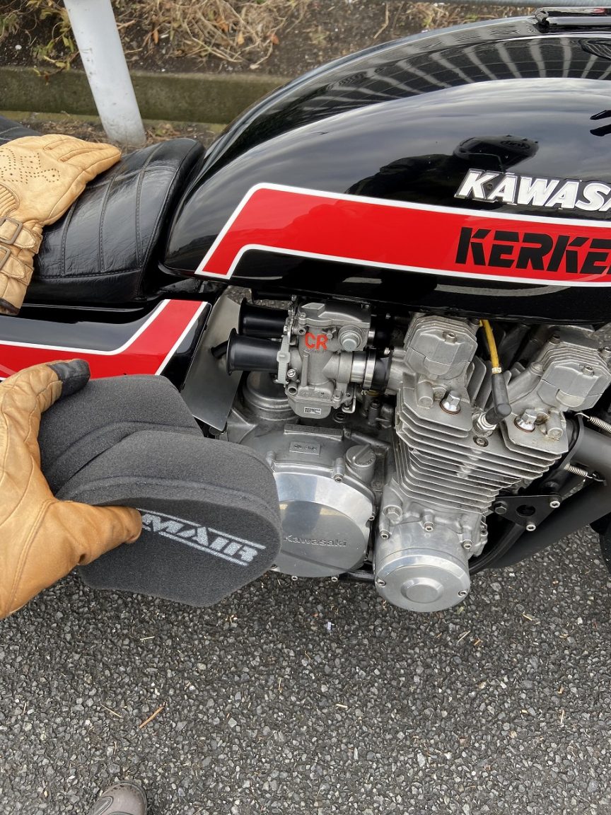今回よりパワーフィルターをやめてファンネルにします。そこで、CRキャブのセッティングがどのようになるか確認します。先ずはファンネルに被せるタイプのフィルターを装着した状態でテスト。