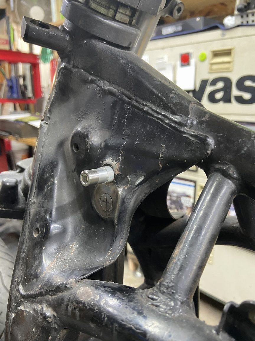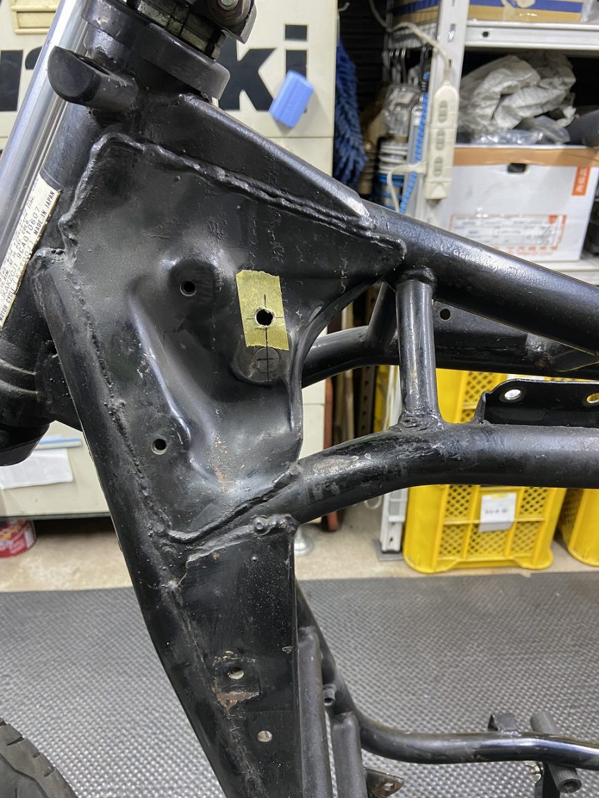 フレーム側にはボルト穴を開け、下駄を取り付けます。