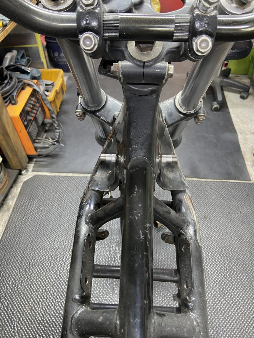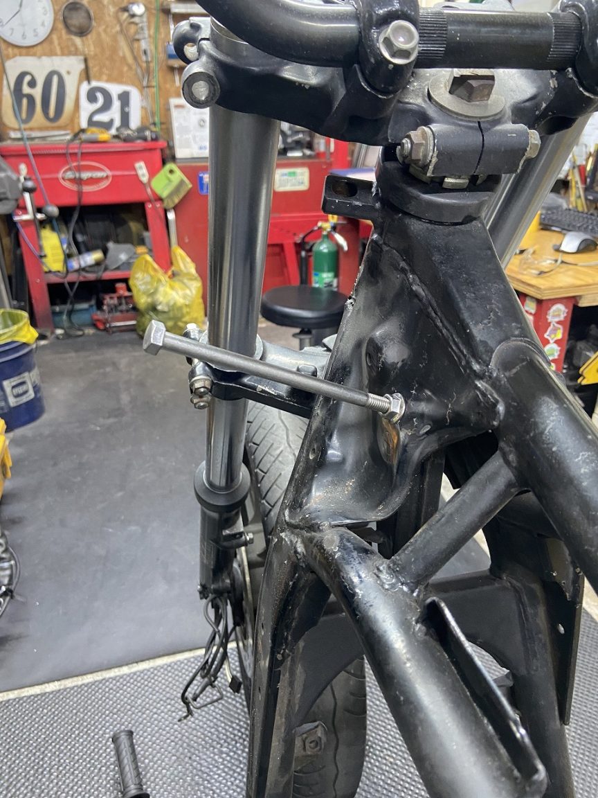 アッパーブラケットとステーをフレームに溶接で仮付けします。