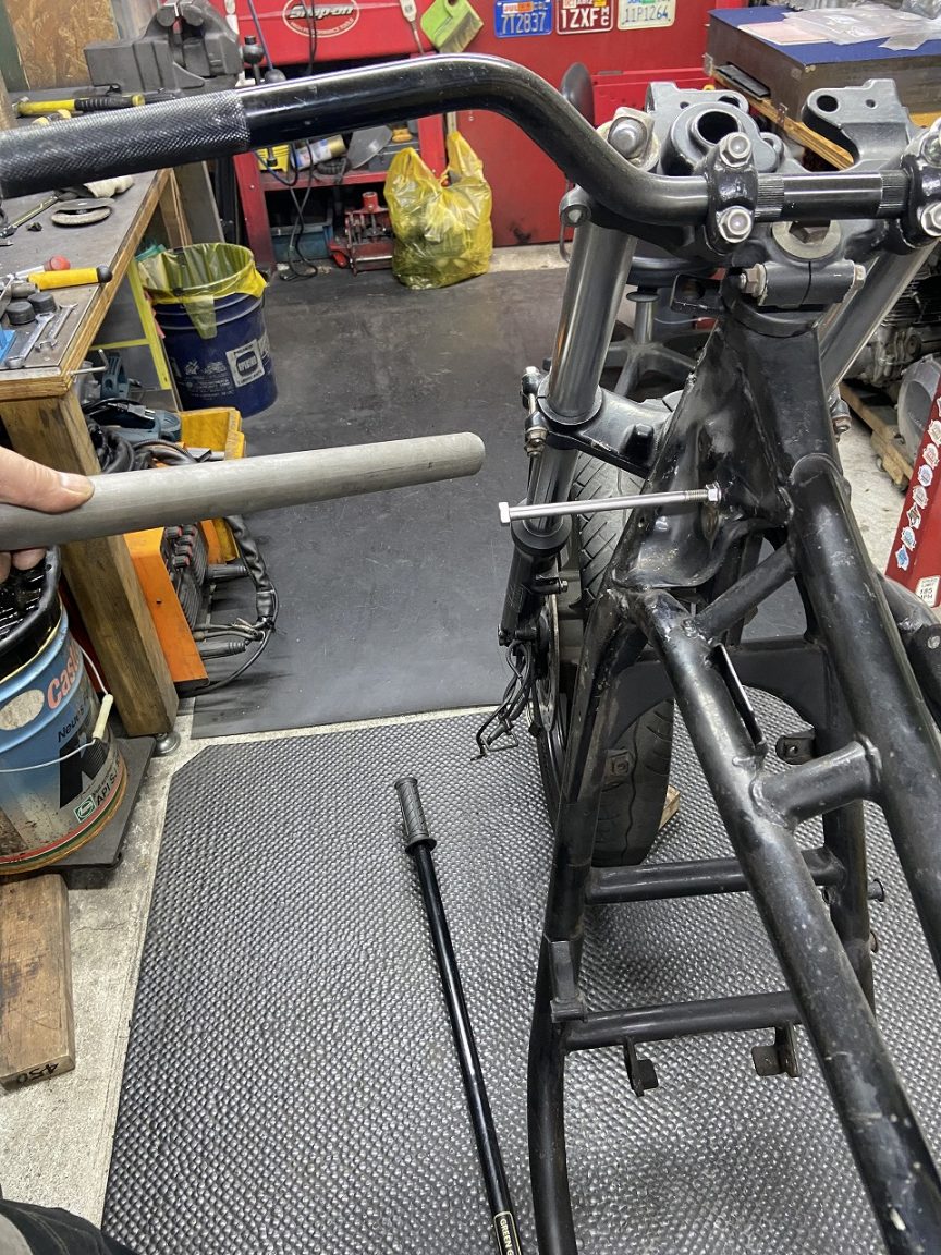 更にパイプで延長し、ボルトが水平になるまでガセットプレートを変形させます。