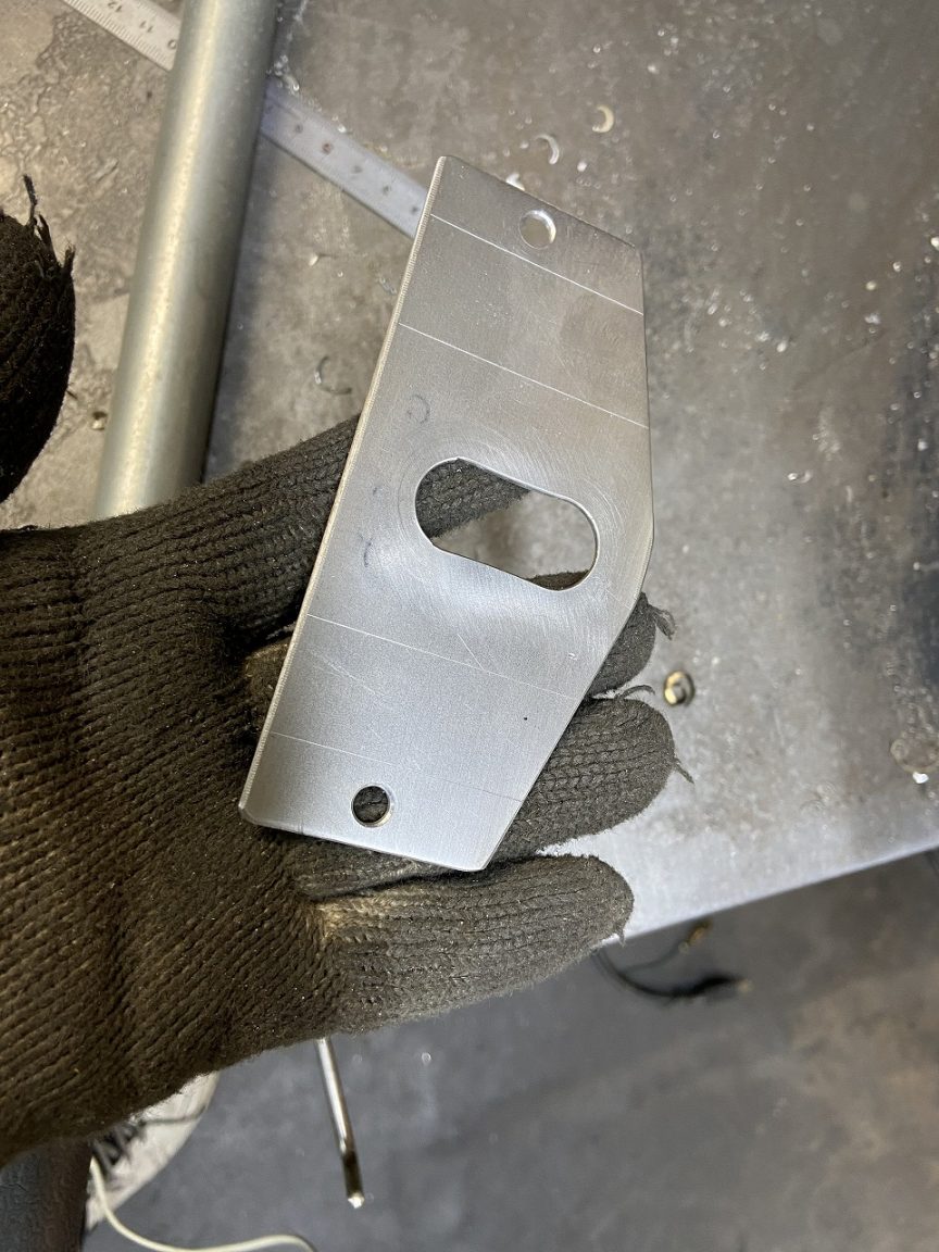 次に後ろ側マウントの下駄を作ります。鉄板からこのような形に切り出します。