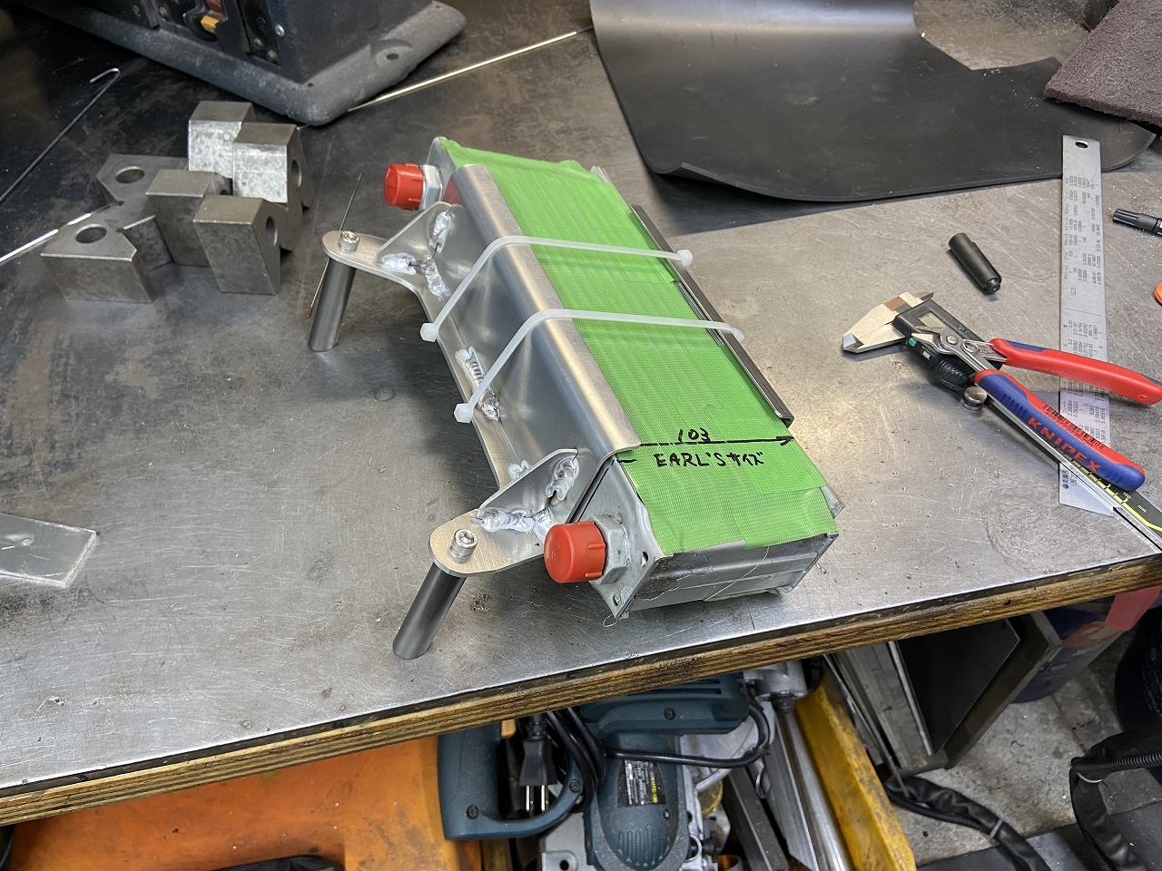 続いてワークスタイプのオイルクーラーを製作します。こちらはアルミ製のロアーブラケットです。