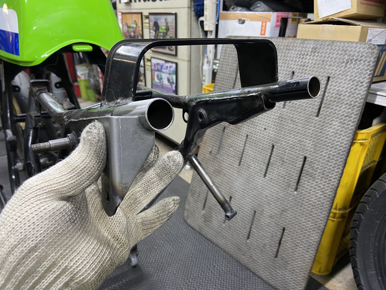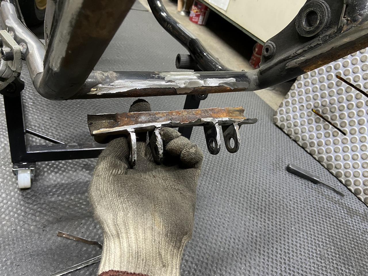 フレームのリヤ周りの加工です。