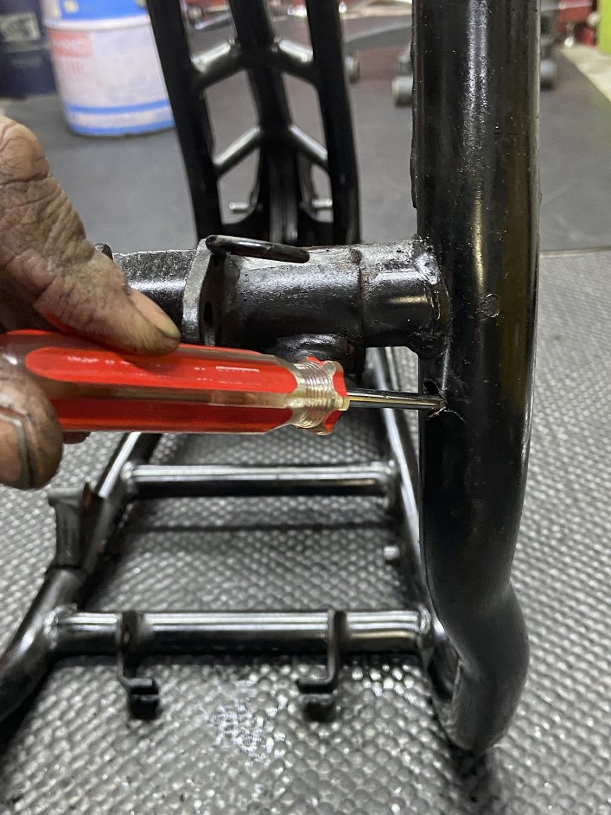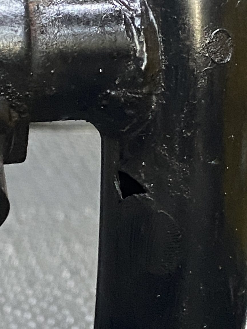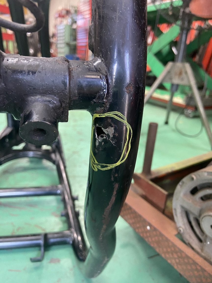 汚れを落としてみると、フレームに穴が開いているのを発見しました。