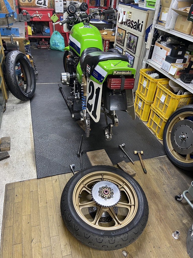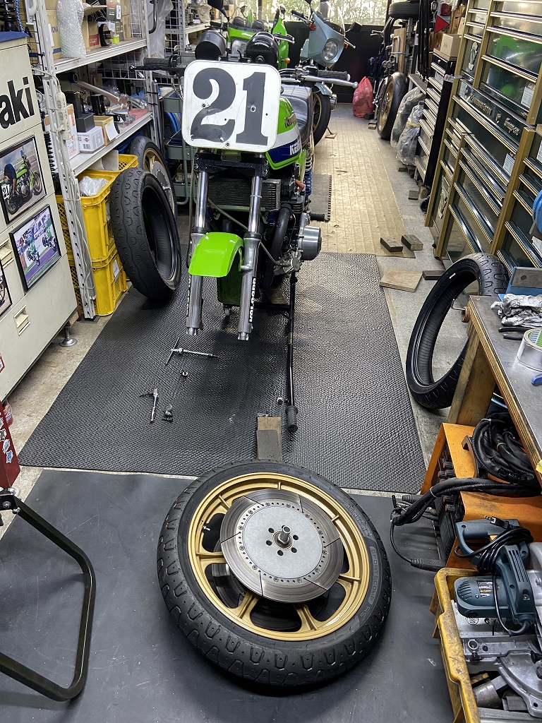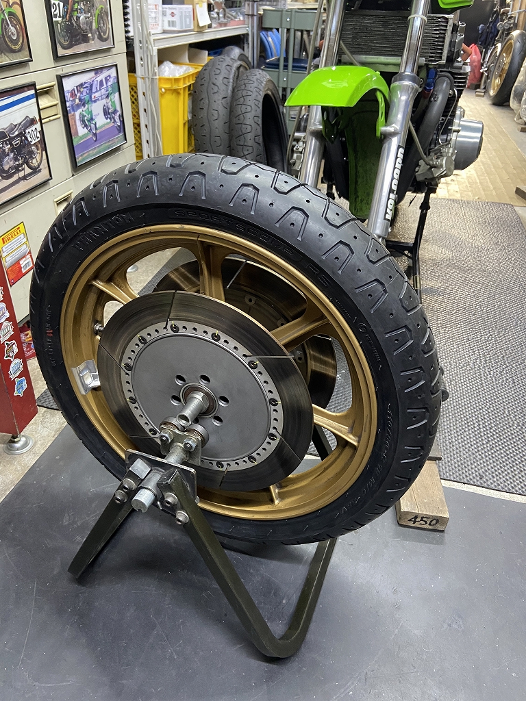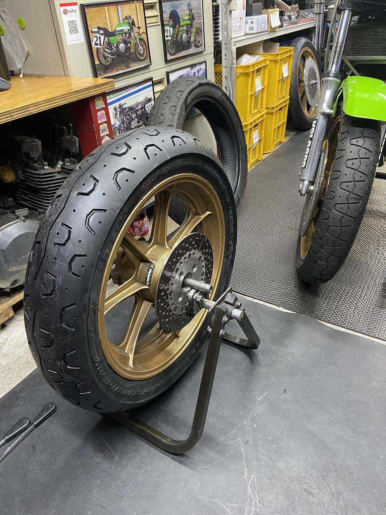 タイヤを組み替え、バランス取りします。フロントは特に精度良く調整します。