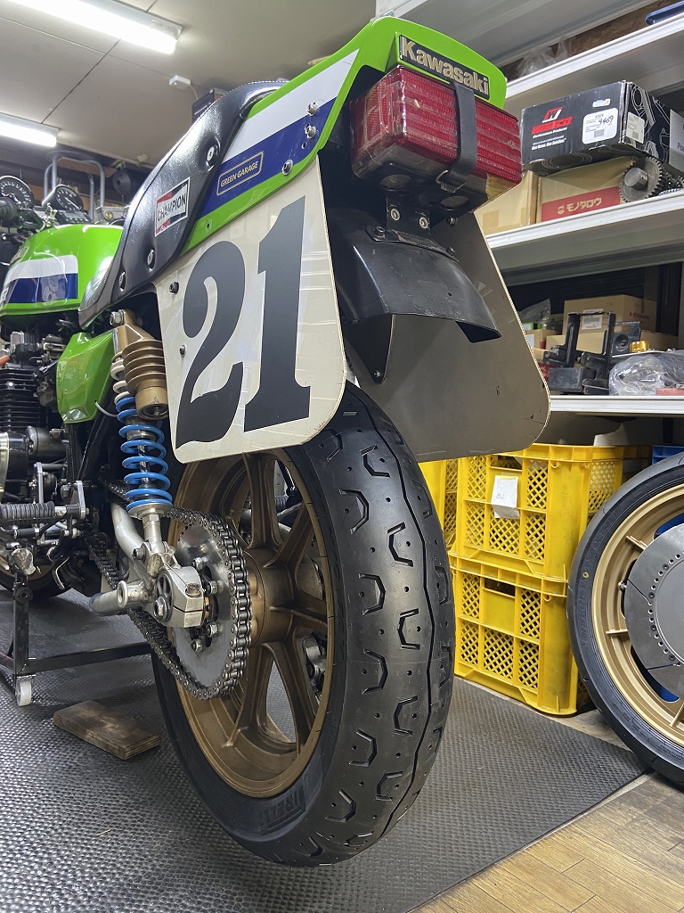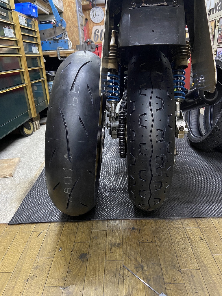 リヤを比べるとこんな感じ。こちらもピレリの方が丸いですね。