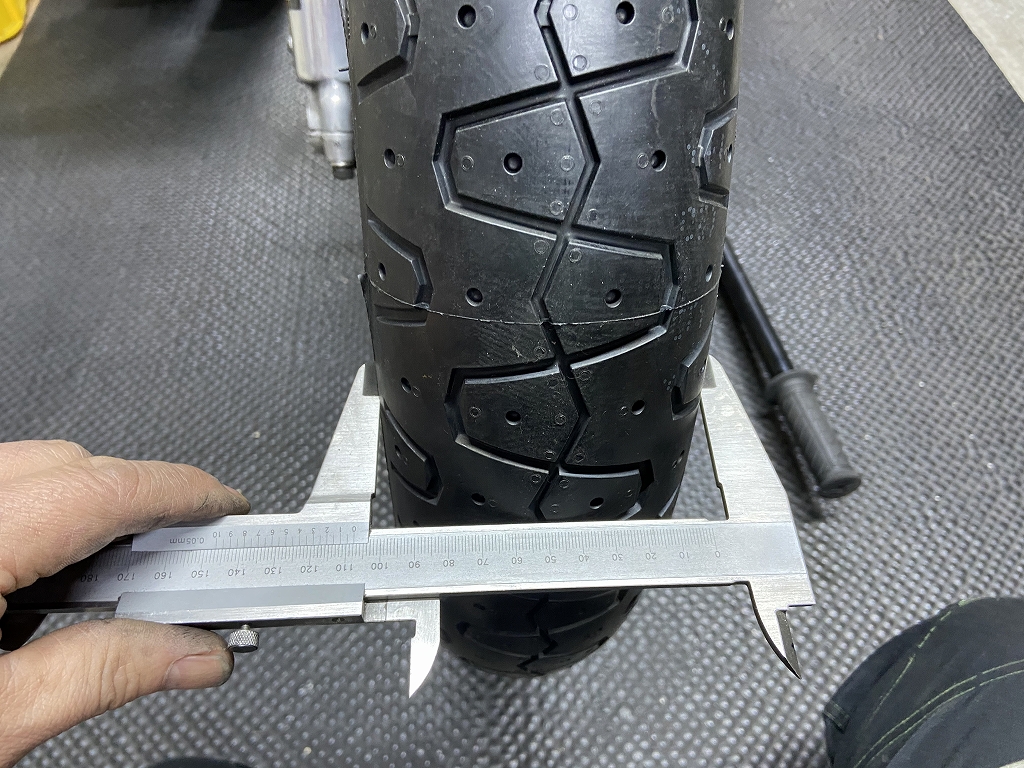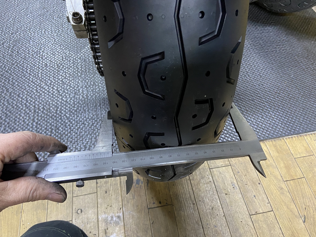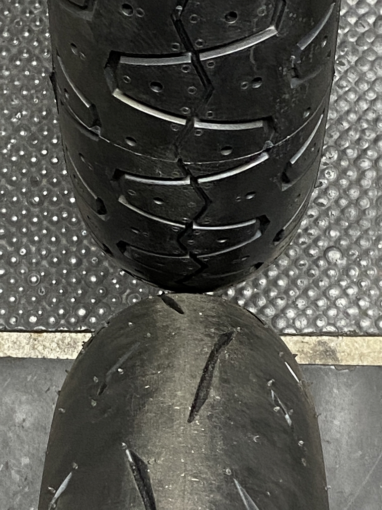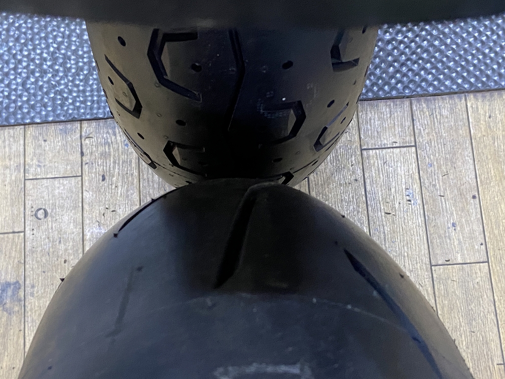 現在のタイヤは昨年11月のTOT直前に中古で入手した物。前後とも一部のスリップサインが出てきました。摩耗しても特に変な挙動が無いのが確認できました。