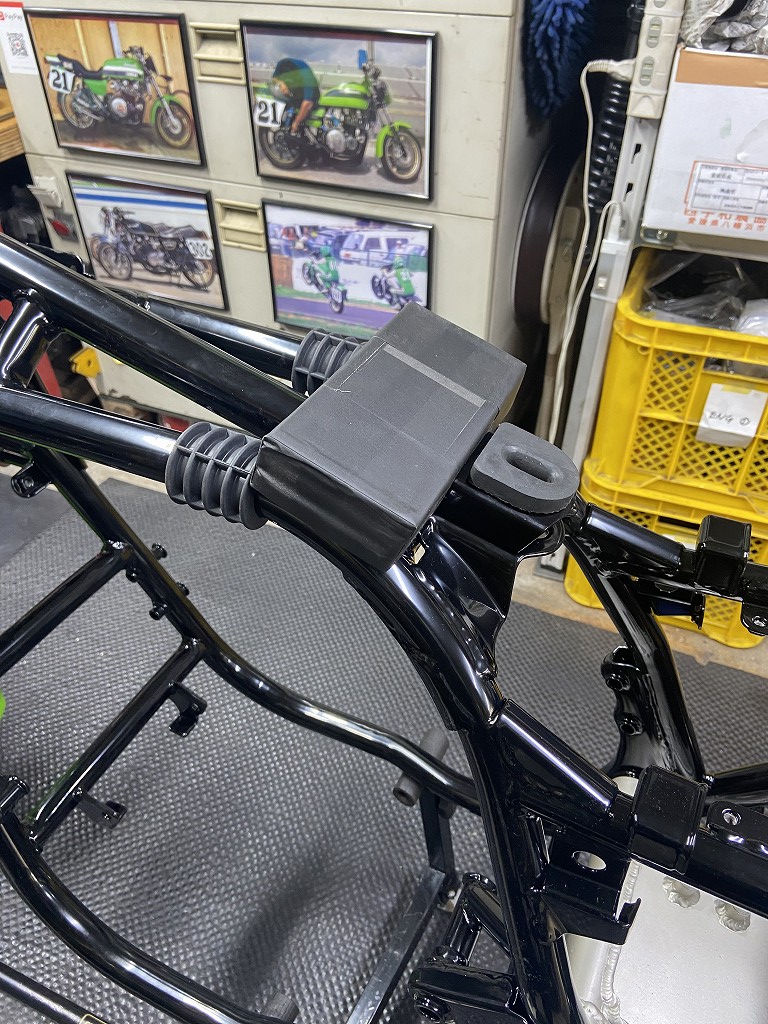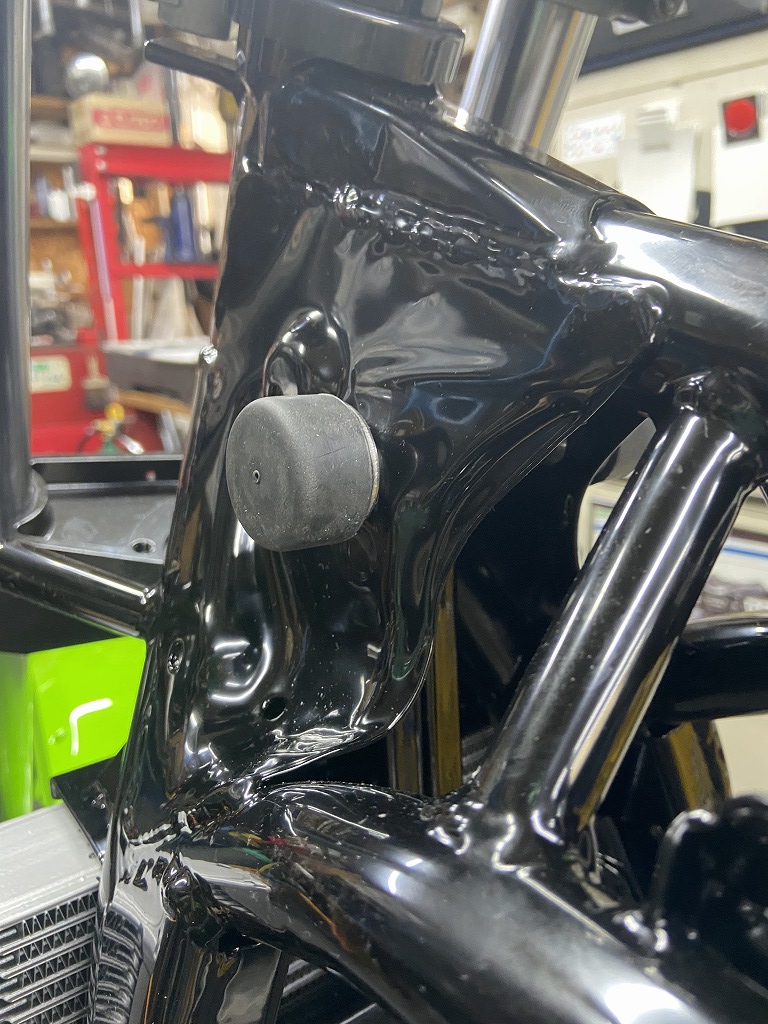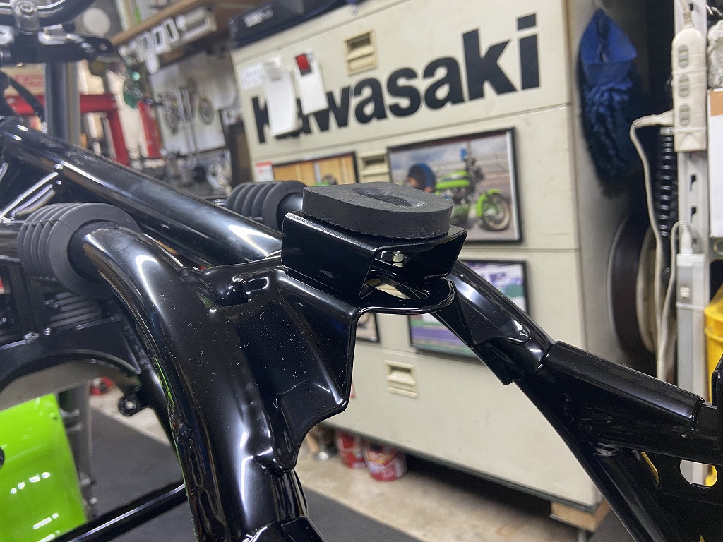 アッパーブラケットはフレーム直付けです。こちらにもゴム板を張り付けます。