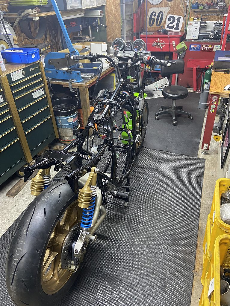 右側はこんな感じ。リヤマスターはニンジャ250の純正新品を使います。