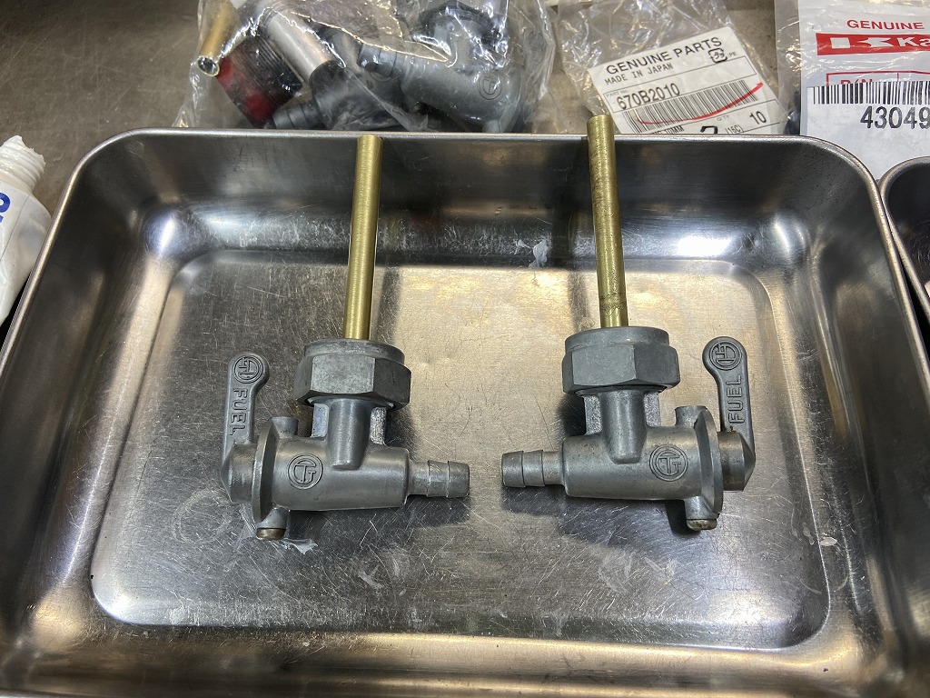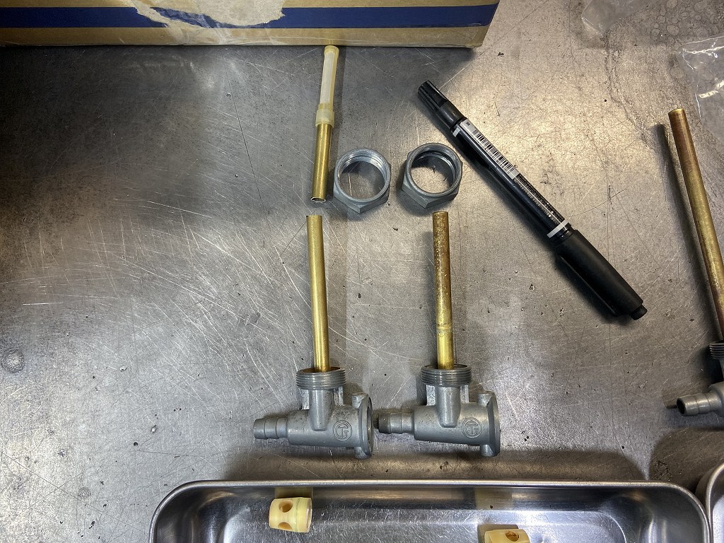 タンクはWコック仕様なので状態のいい方から2個を選びます。長いパイプは切断します。
