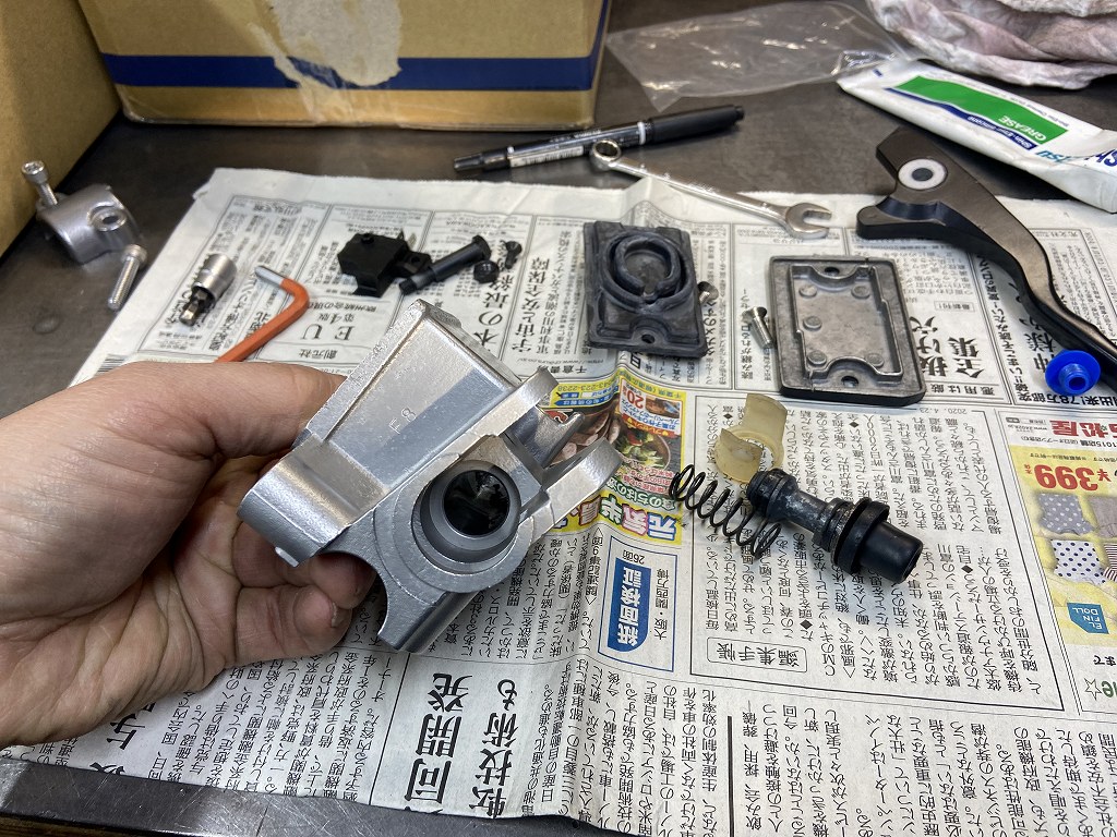外観はきれいにレストア済みなので、内部パーツのみ新品交換します。シリンダー内部も研磨されてきれいですね。