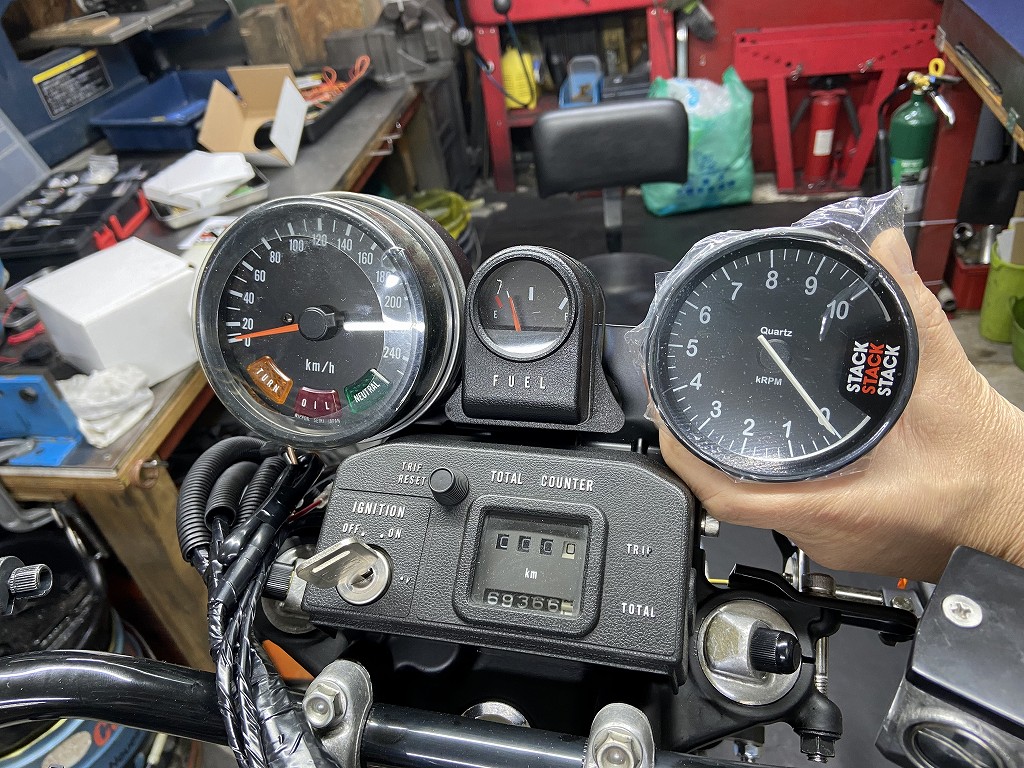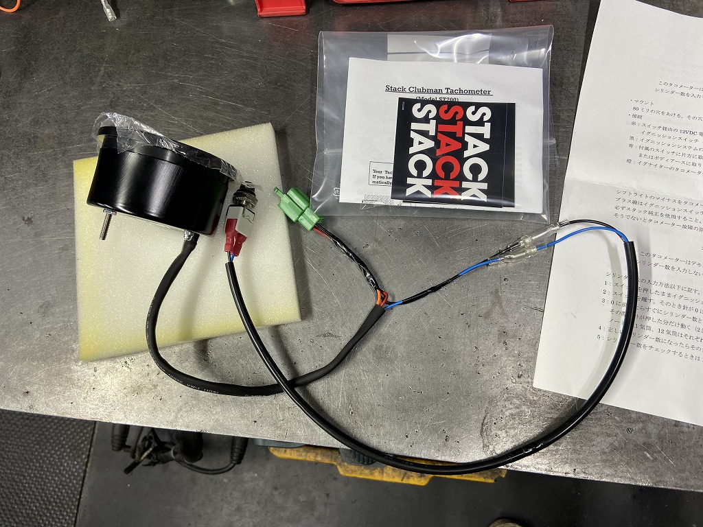 タコメーターとスピードメーターのハーネを製作します。タコメーターはSTACK製のST200シリーズで、スケールは0~10000rpmのタイプを使用します。