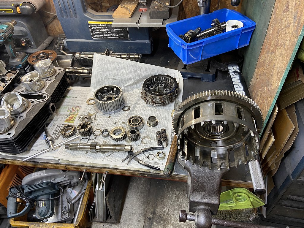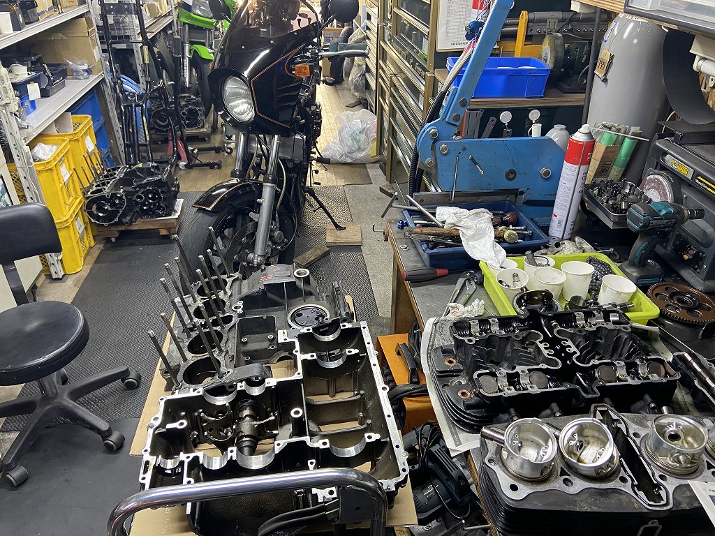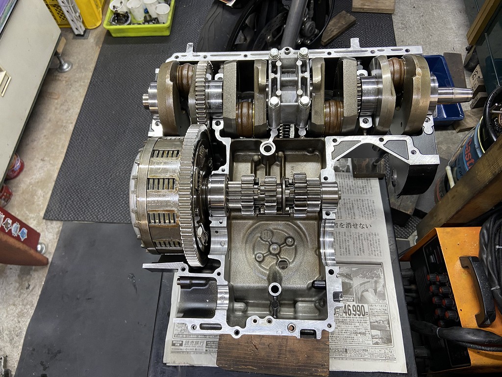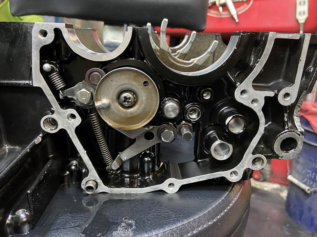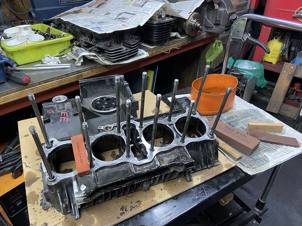 ガレージに戻り、エンジン修理の続きです。