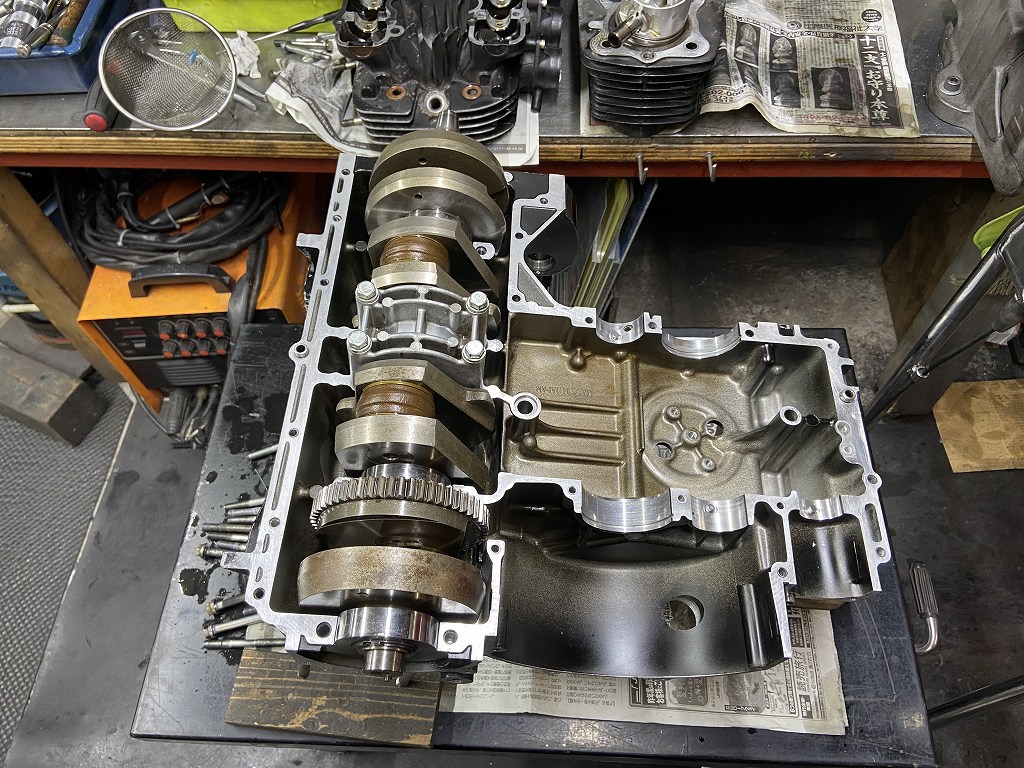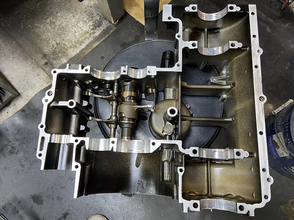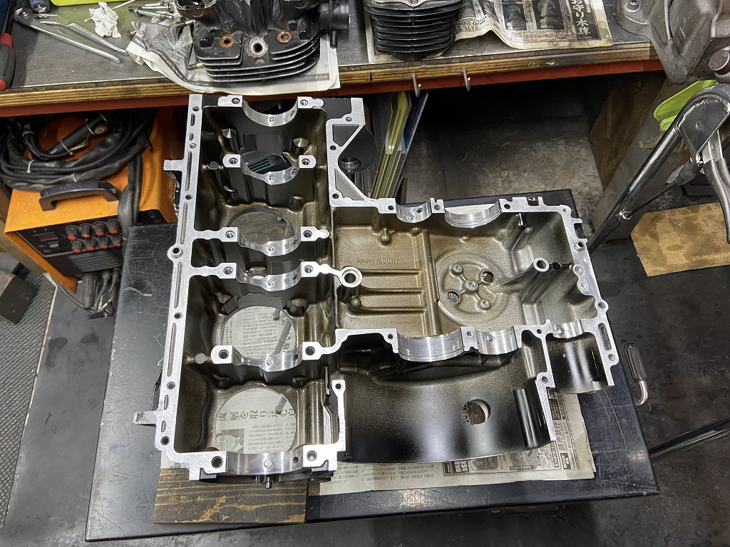 クランクケースを閉じて本日は終了です。