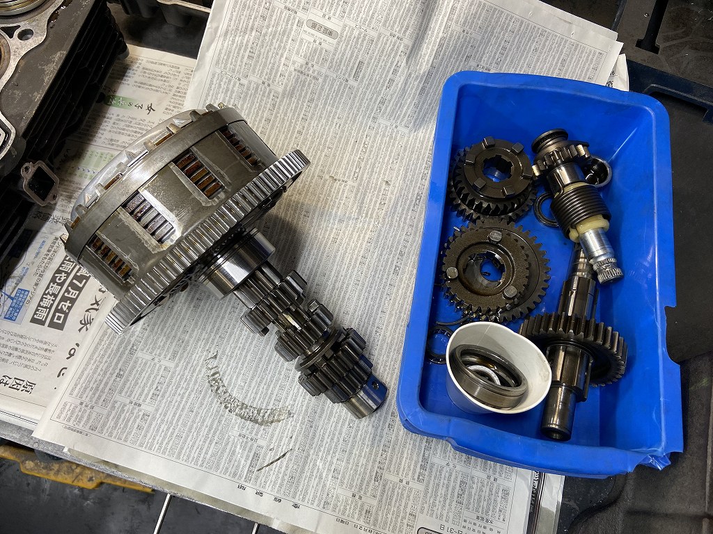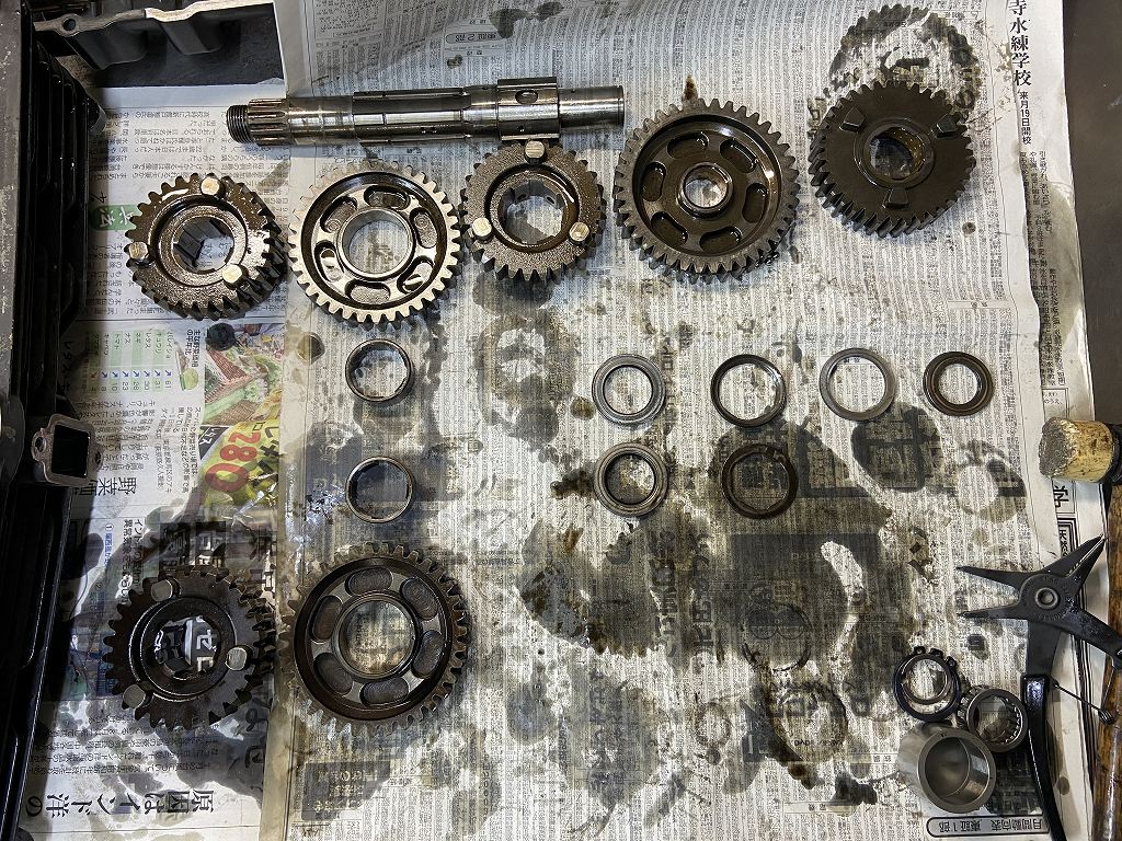 ミッションはベアリングと痛んだギヤを交換します。