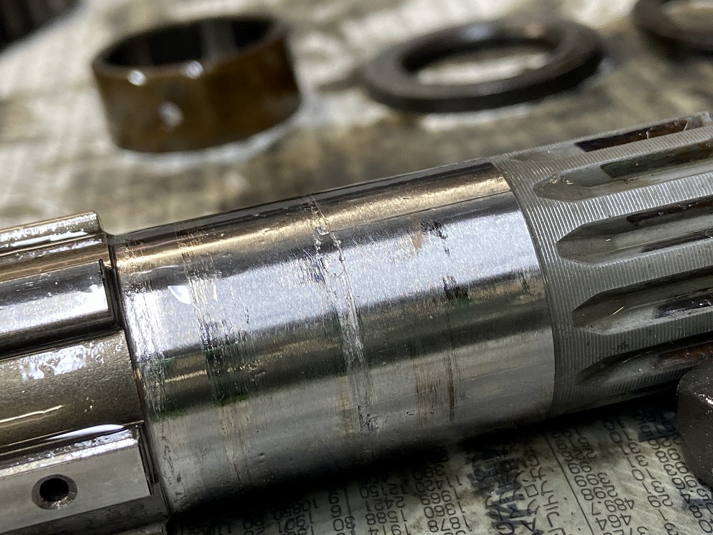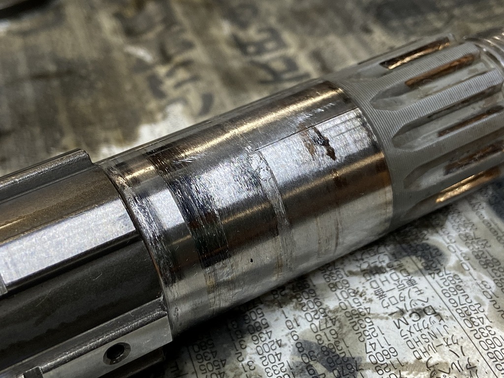 ベアリングのインナーレースが少し回されたようで、線上にかじった痕があるので新しいベアリングが引っ掛かります。
