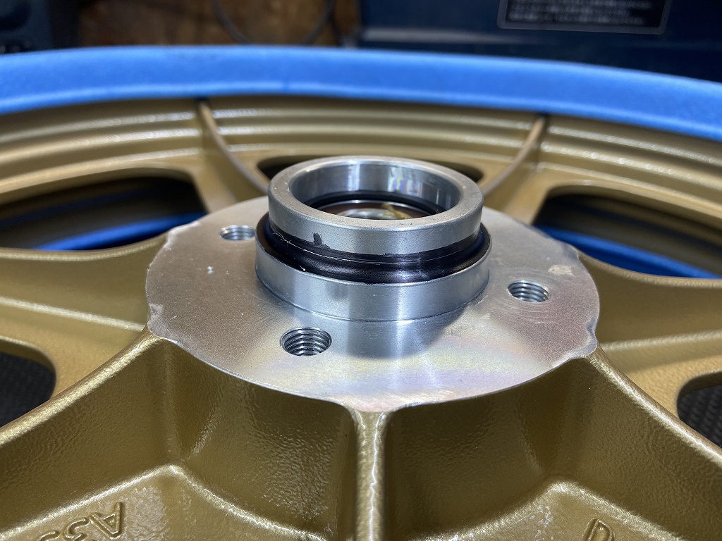 ベアリングにリテーナーナットを挿入し、中空アクスルをねじ込んだところです。