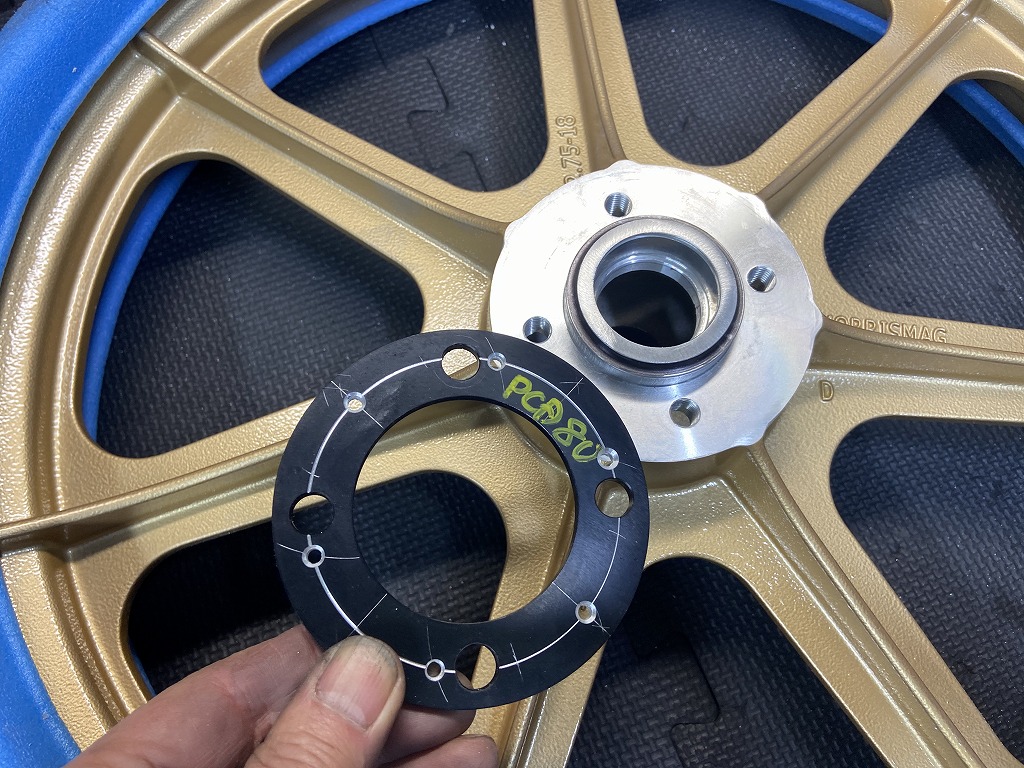 M8ネジ6穴仕様になりました。PCDは80ミリとしています。