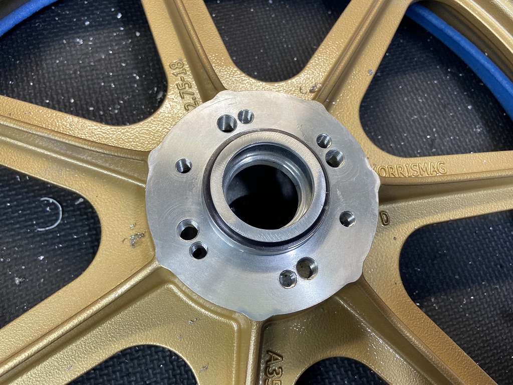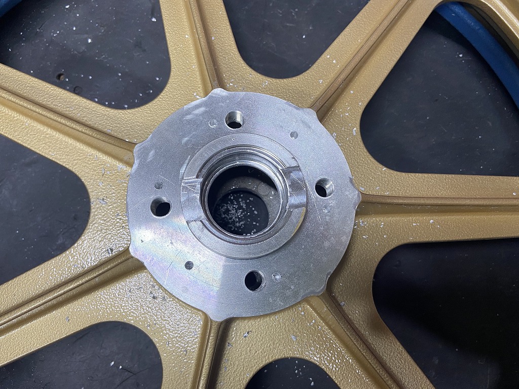 これでS1ローターが付くようになります。フランジをカットするのは、新たに外側にホイールベアリングが配置されるためです。