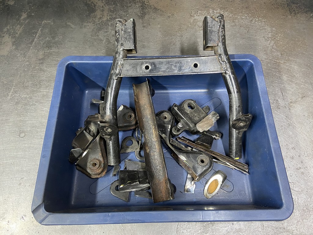 先ず大まかに削除したパーツはこちら。シートレールやステップホルダー、サイドスタンドブラケットなど。