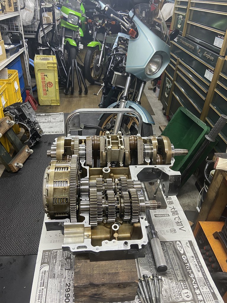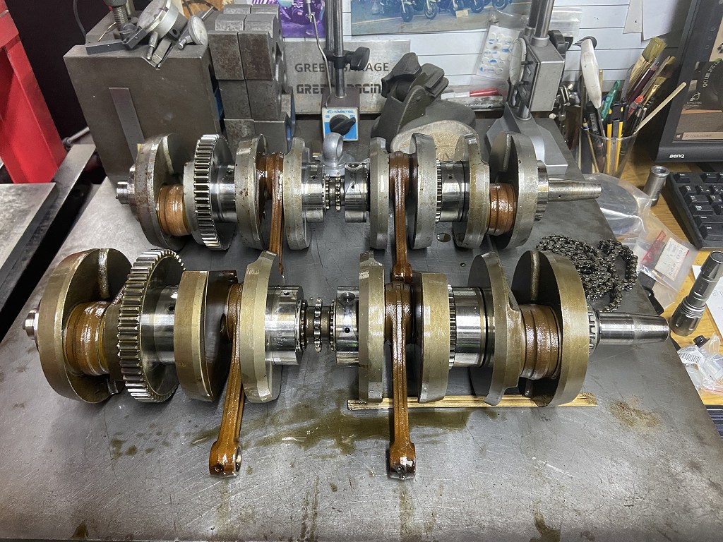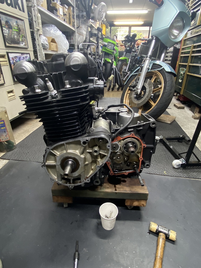 交換用に準備したクランクは手前のZ1000Mk2用です。クランクテーパー部も太くなり締結は強力に、マグネットローターも外転式となり発電量もアップします。