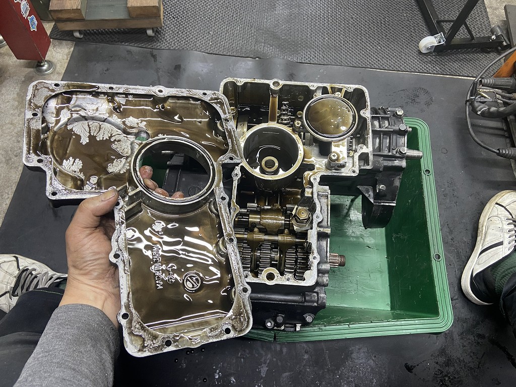 ツーリング中にジェネレーターローターが空転してしまい、かろうじてエンジン始動はできる状態だったのでそのまま帰宅。分解してみるとテーパーに大きな傷があり、その場でクランク交換を決断したのでした。