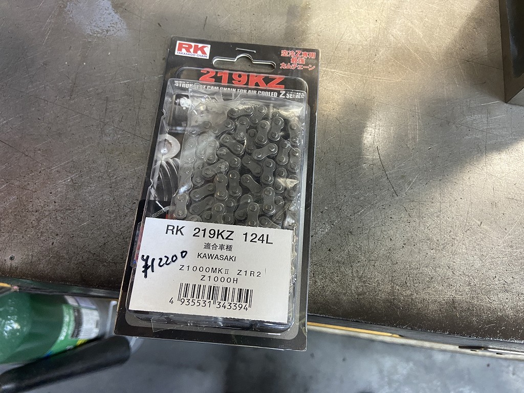 カムチェーンはリンク数が増えるので、RK製219KZ、Z1000Mk2用の124リンクを使います。