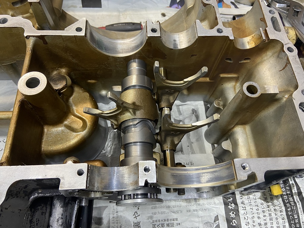 走行距離の多いエンジンなので、少し摩耗しているシフトドラムは新品に交換します。