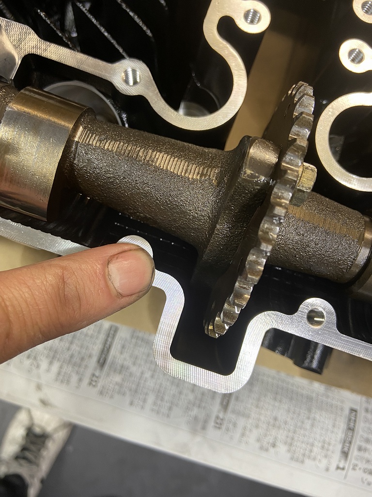 カム山の干渉はありませんでしたが、カムチェーントンネルとカムのフランジ部分が干渉します。