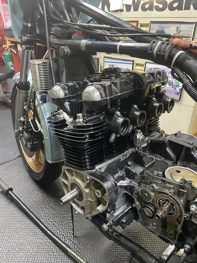 ヘッドカバーはZ1Rを使うので、左側のMk2のトップアイドラーだと干渉します。