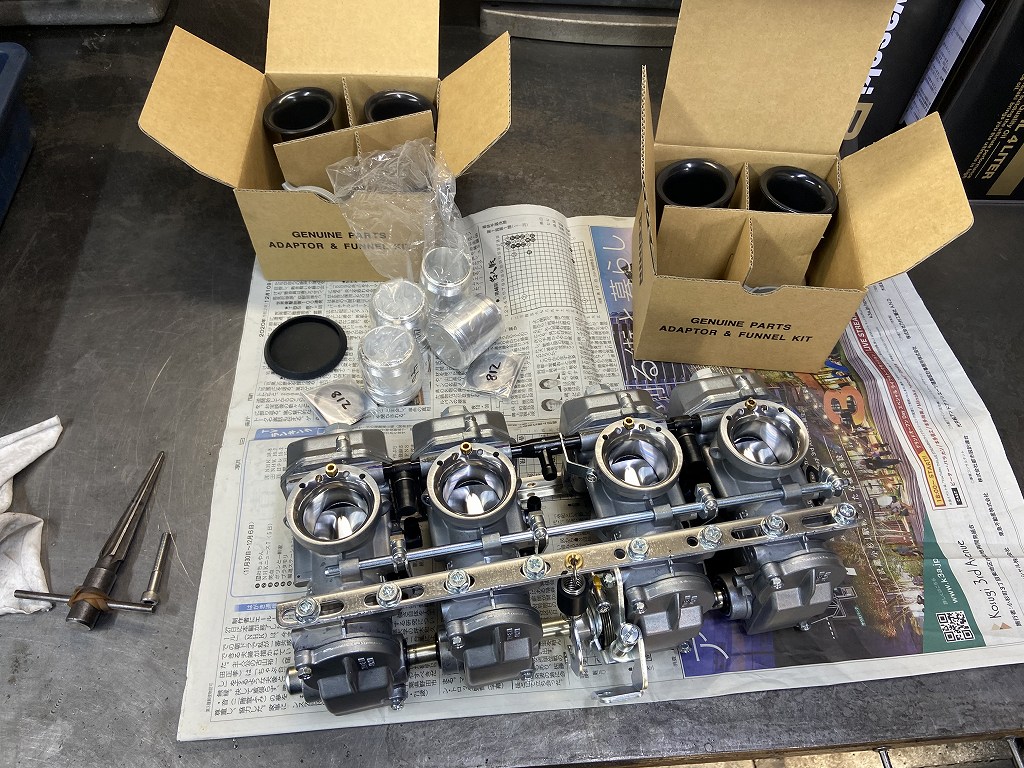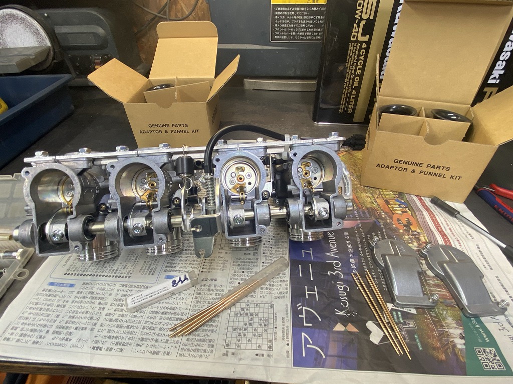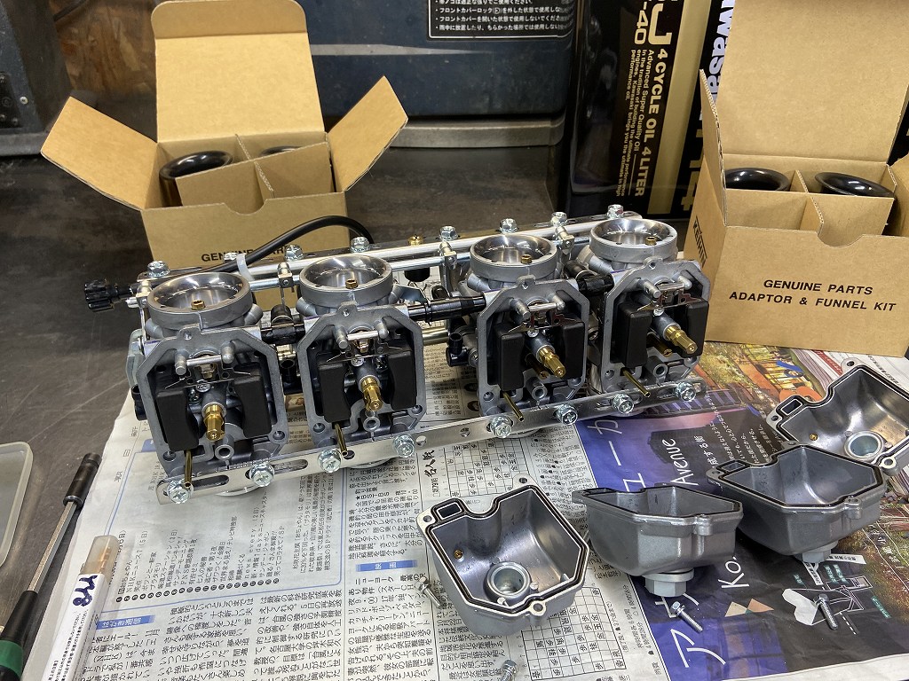 一回分解してジェッティングを確認、手持ちのデータに合わせて内容を変更しておきます。それから一度ビスなどを緩めることで、キャブセッティングの際に整備性がよくなります。