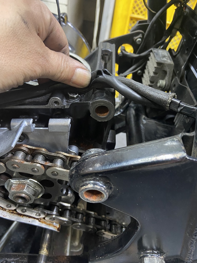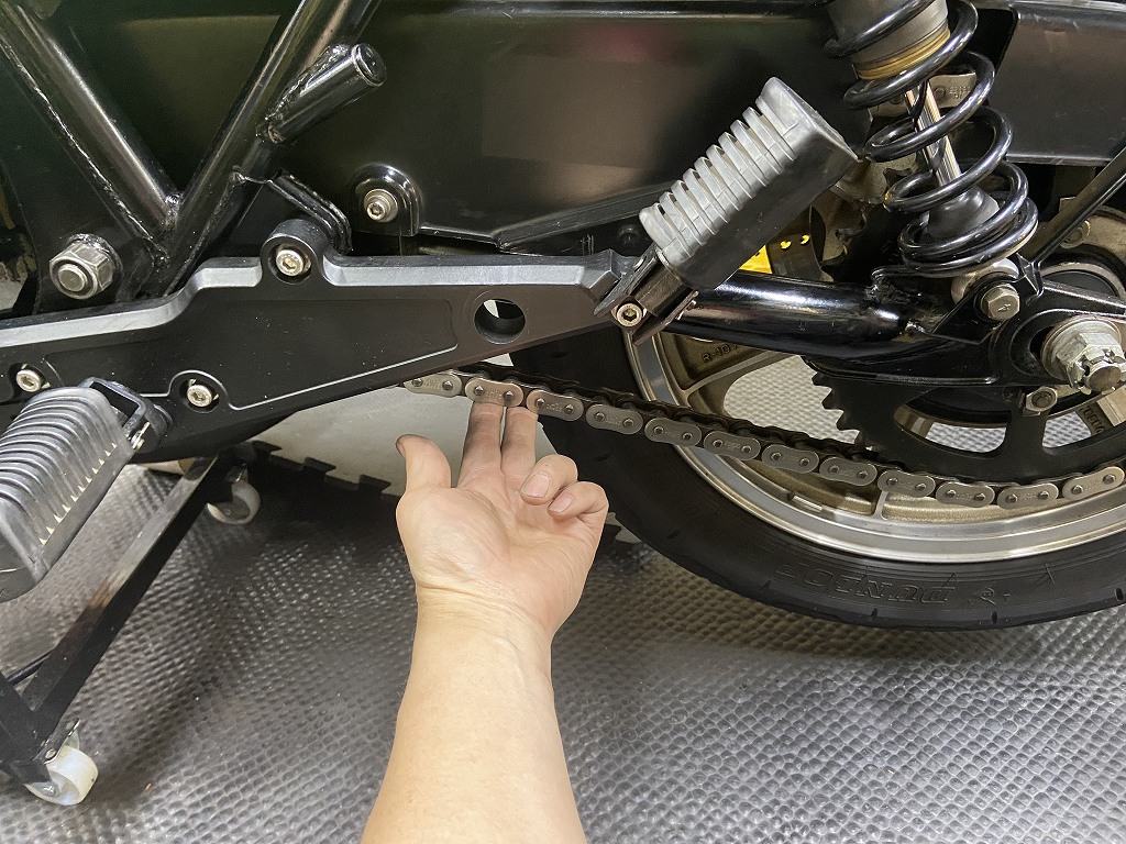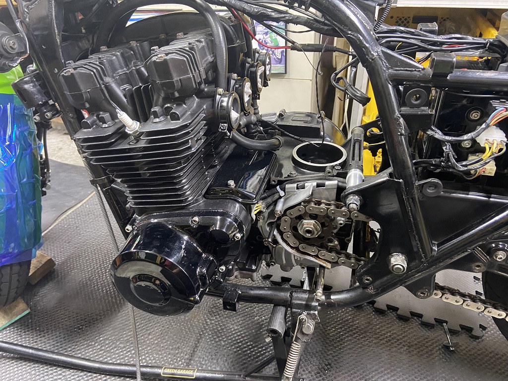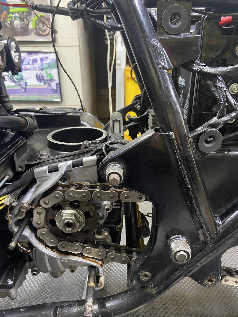 エンジンが正規の位置に戻ったので、チェーンが少し張り気味になりました。適正に再調整します。