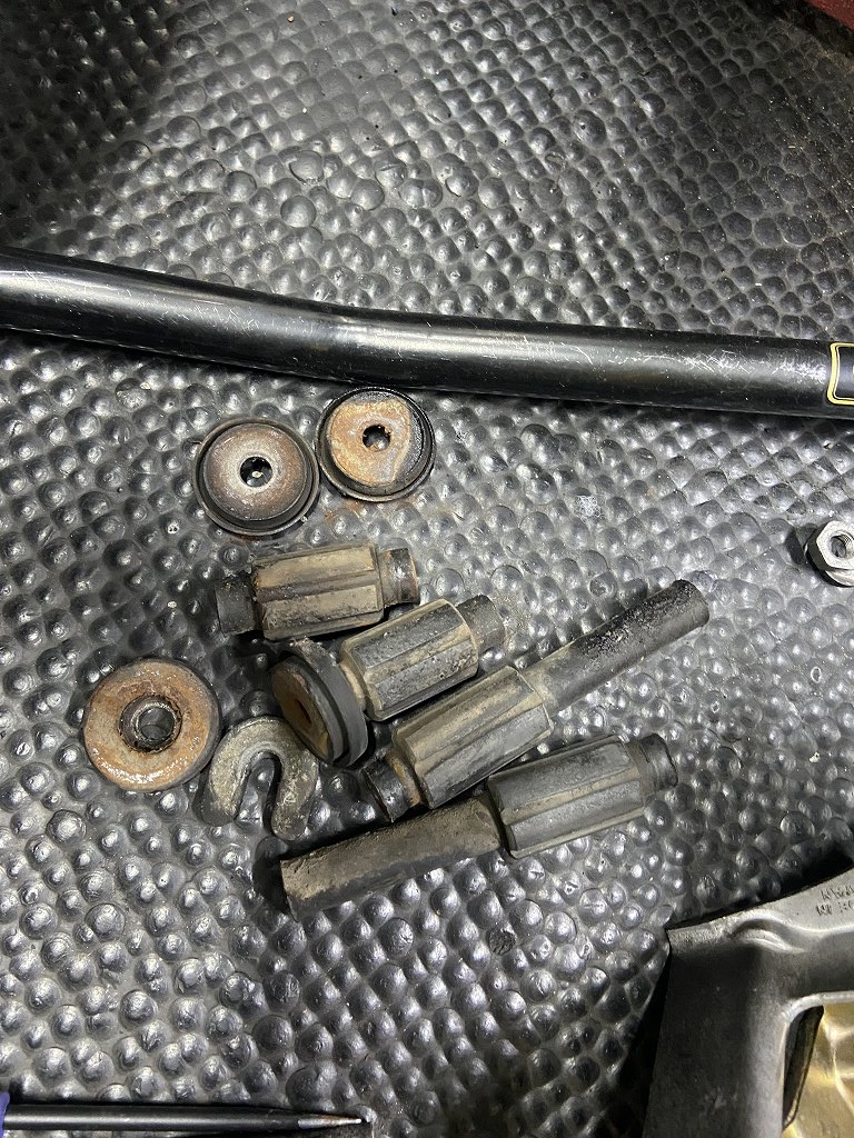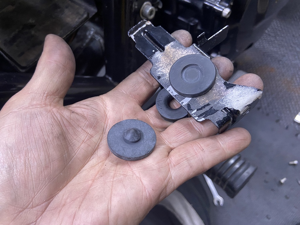 外したインシュレーターがこちら。40年ほど前のゴムなので、すっかり硬化して振動吸収能力も落ちています。