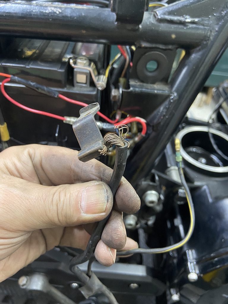バッテリーケーブルが劣化しているので合わせて交換します。こちらも純正部品が入手可能です。