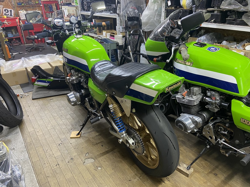 車体に乗せ、穴位置を微調整します。このあと、テールブラケットやリヤフェンダーなどを取り付けたらいよいよ完成です。