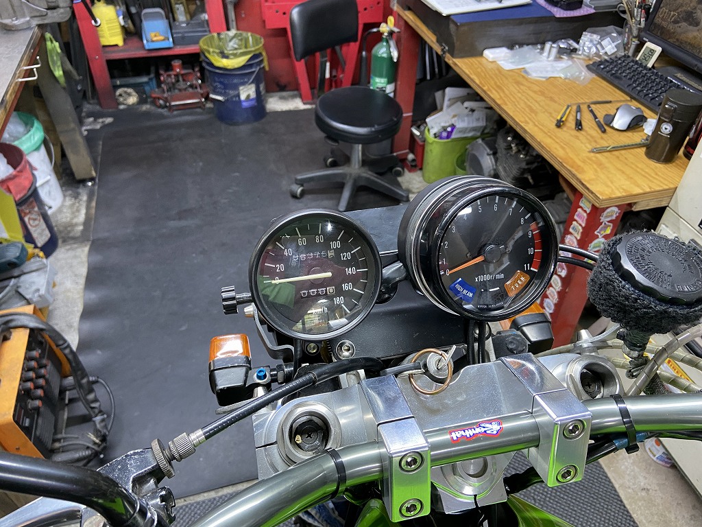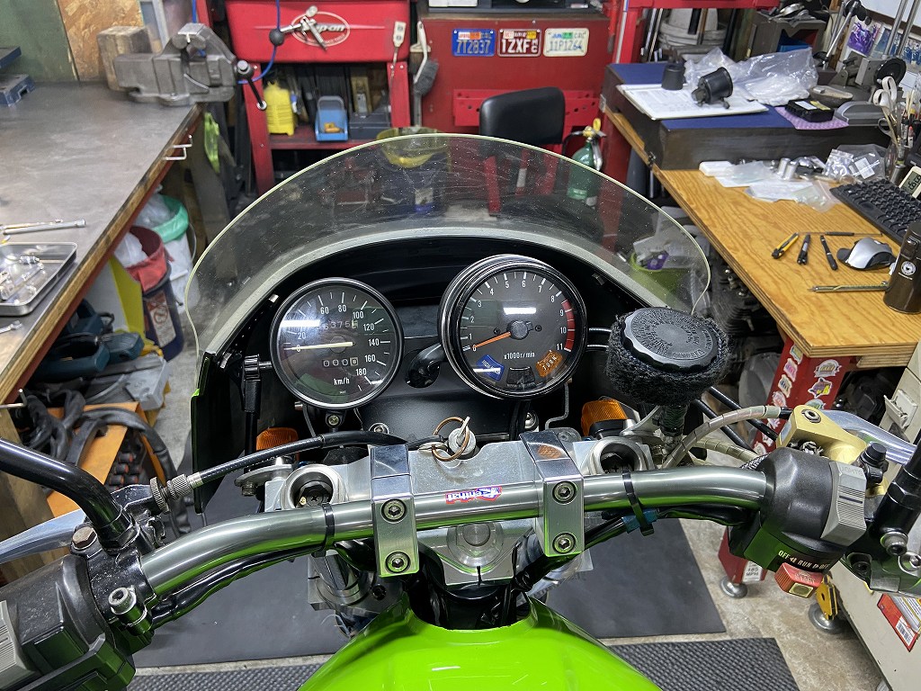 スピードメーターは、実用的な180キロスケールの物に交換します。使用するのはZXR750の純正品です。