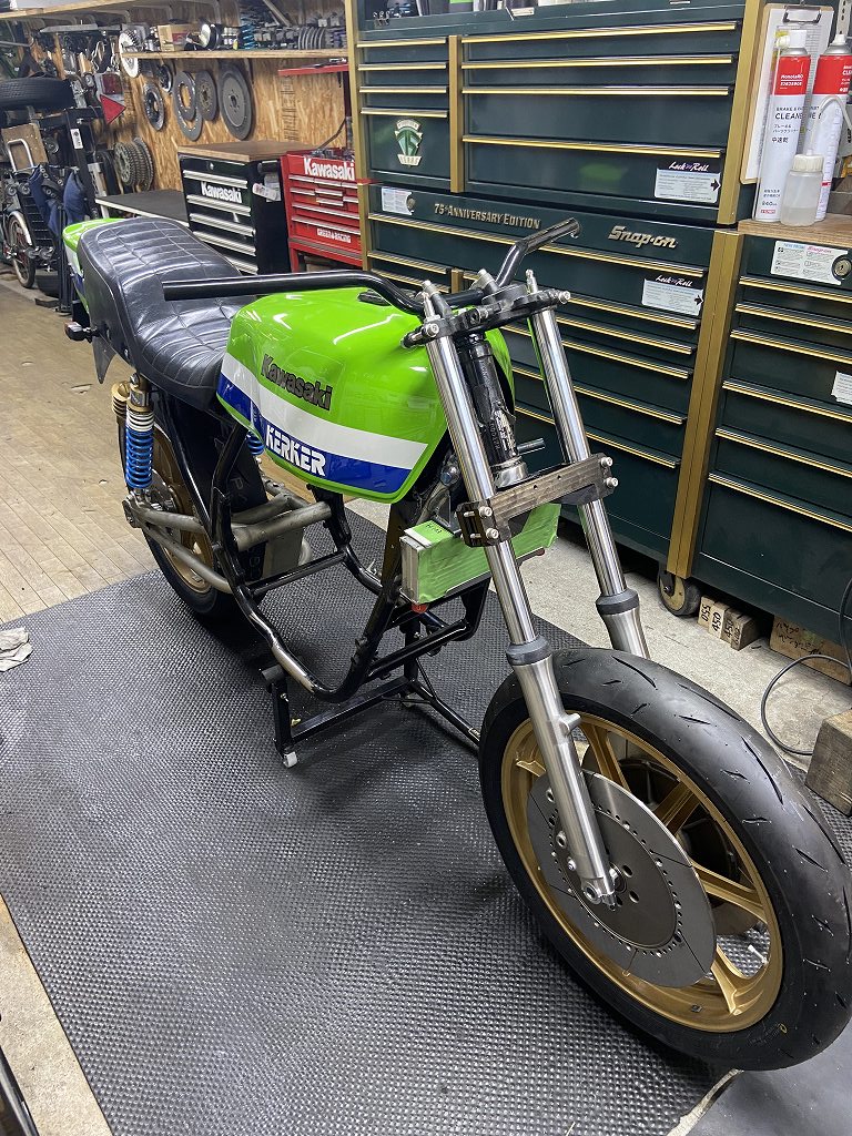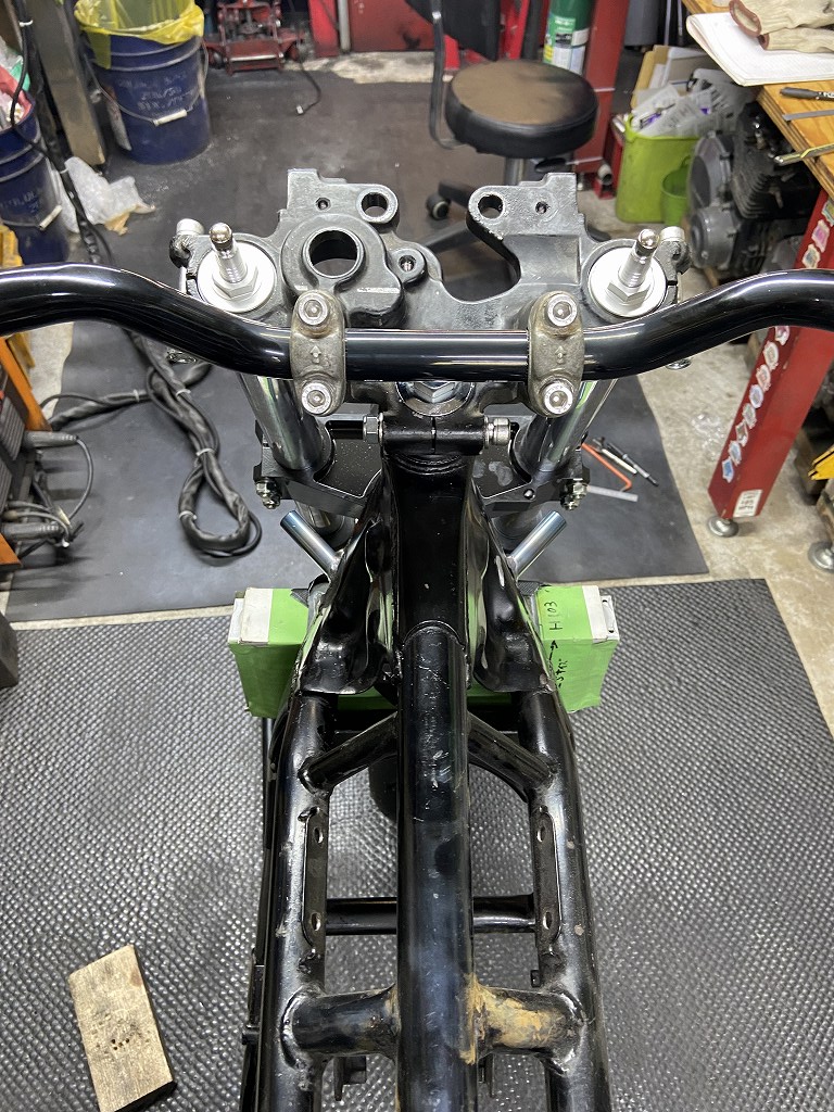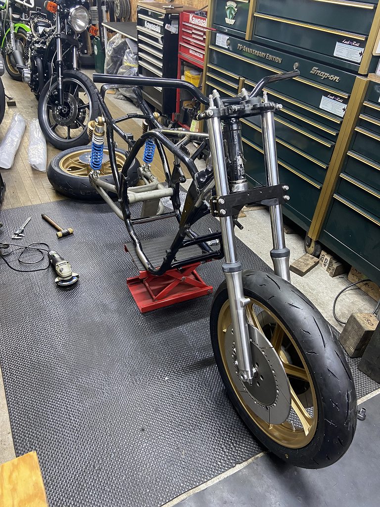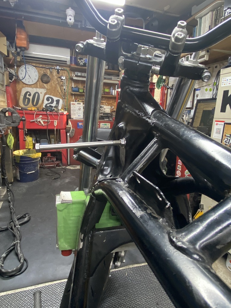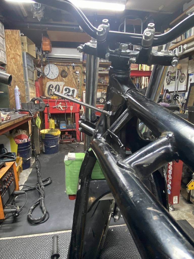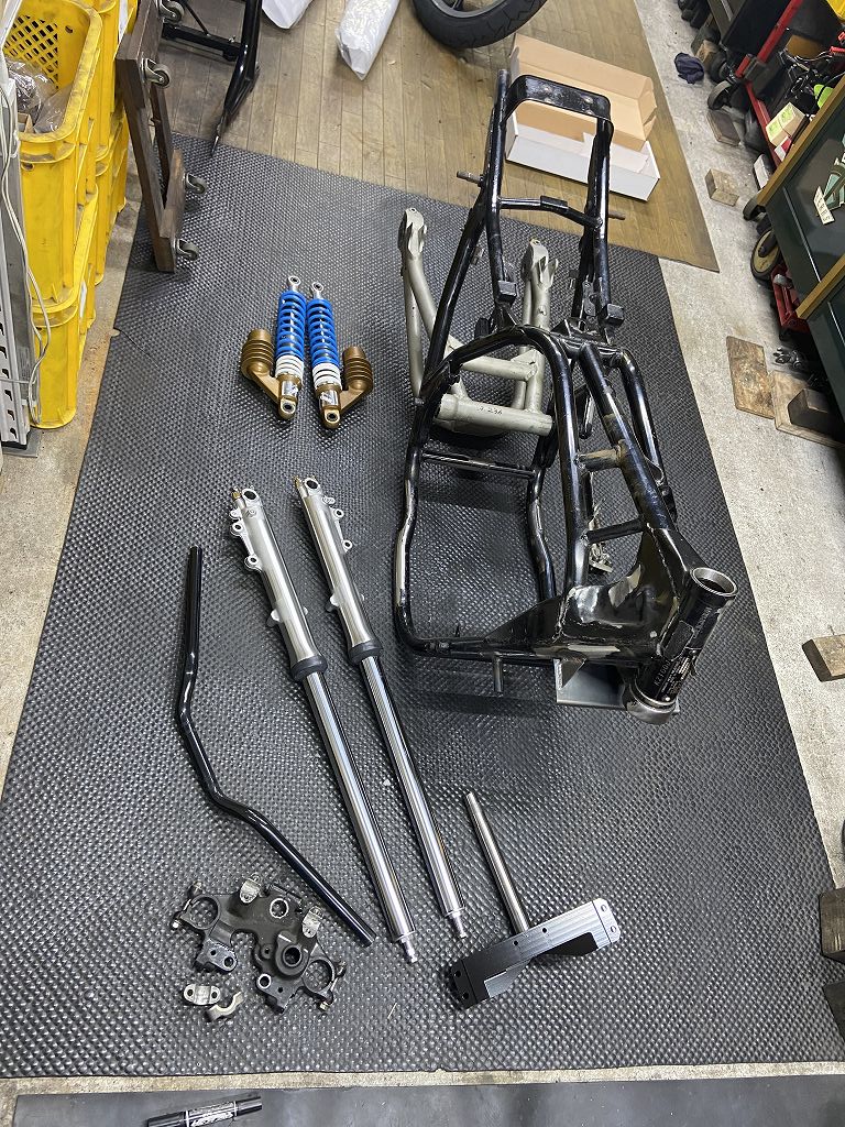 フレームの加工を進めるため、一旦足回りなどを付けて立ち上げます。