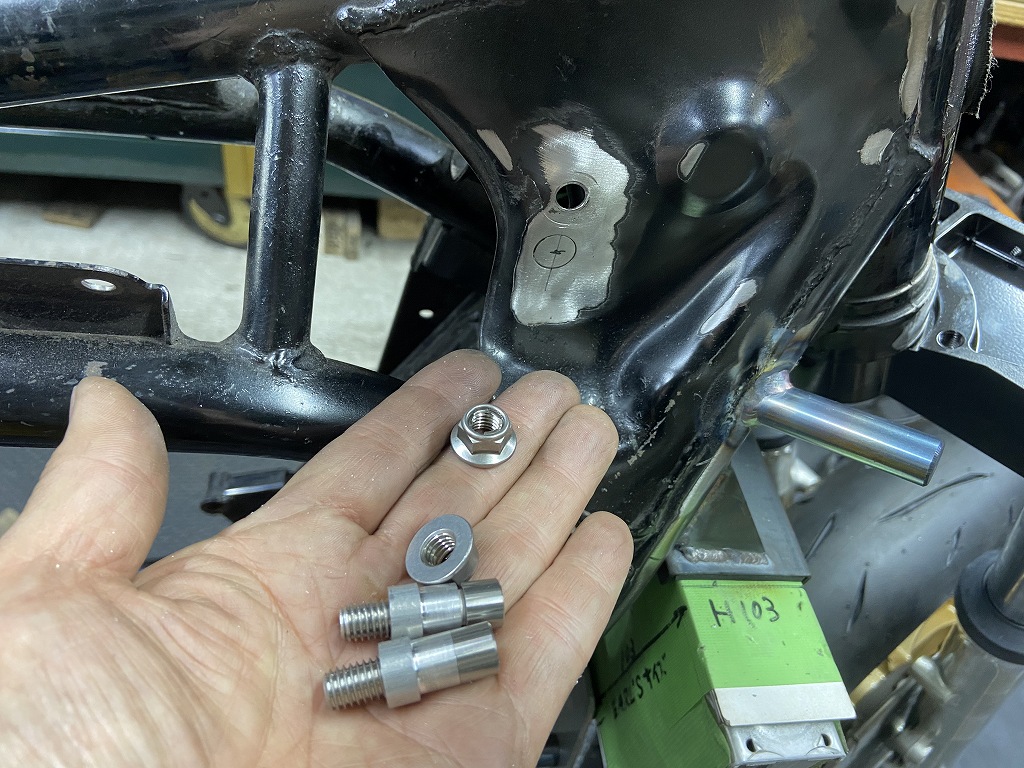 アルミカラーと小径に削ったボルトを用意し、マウントピンとします。