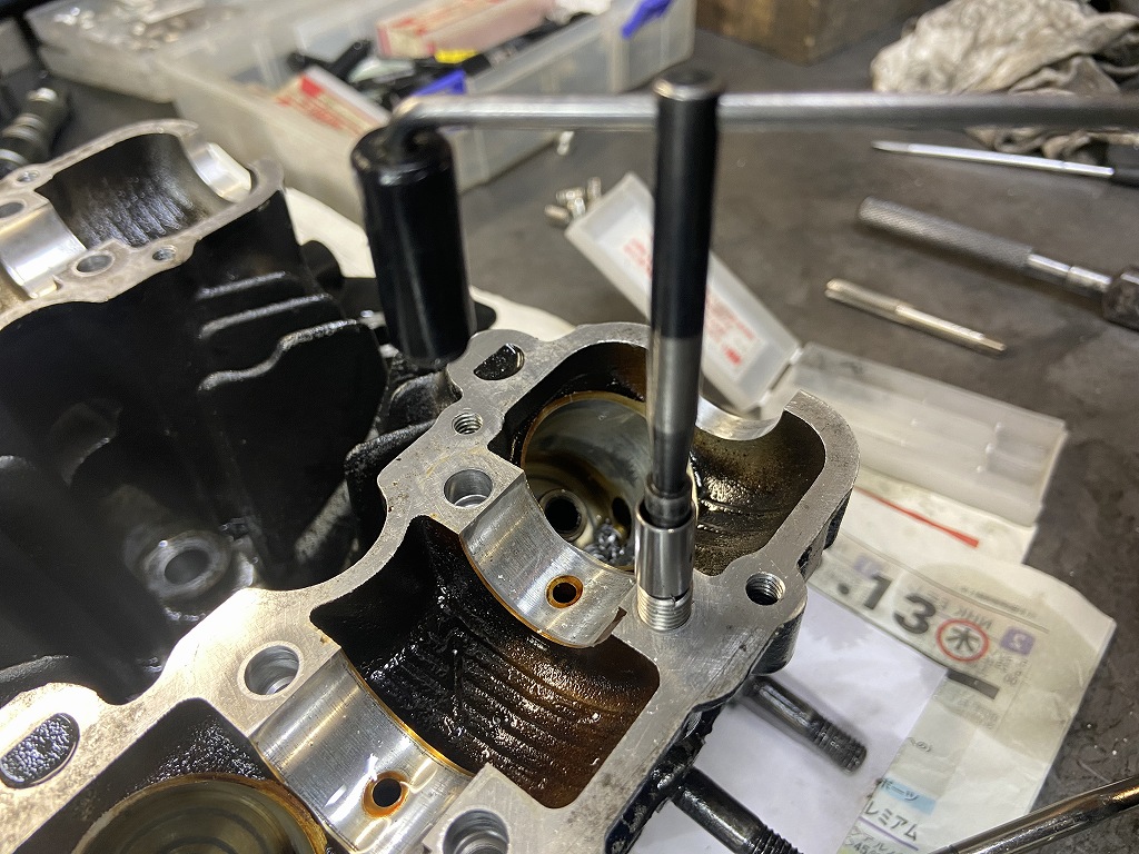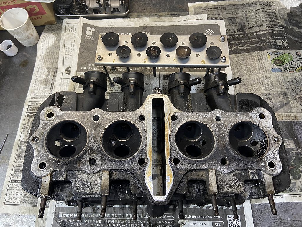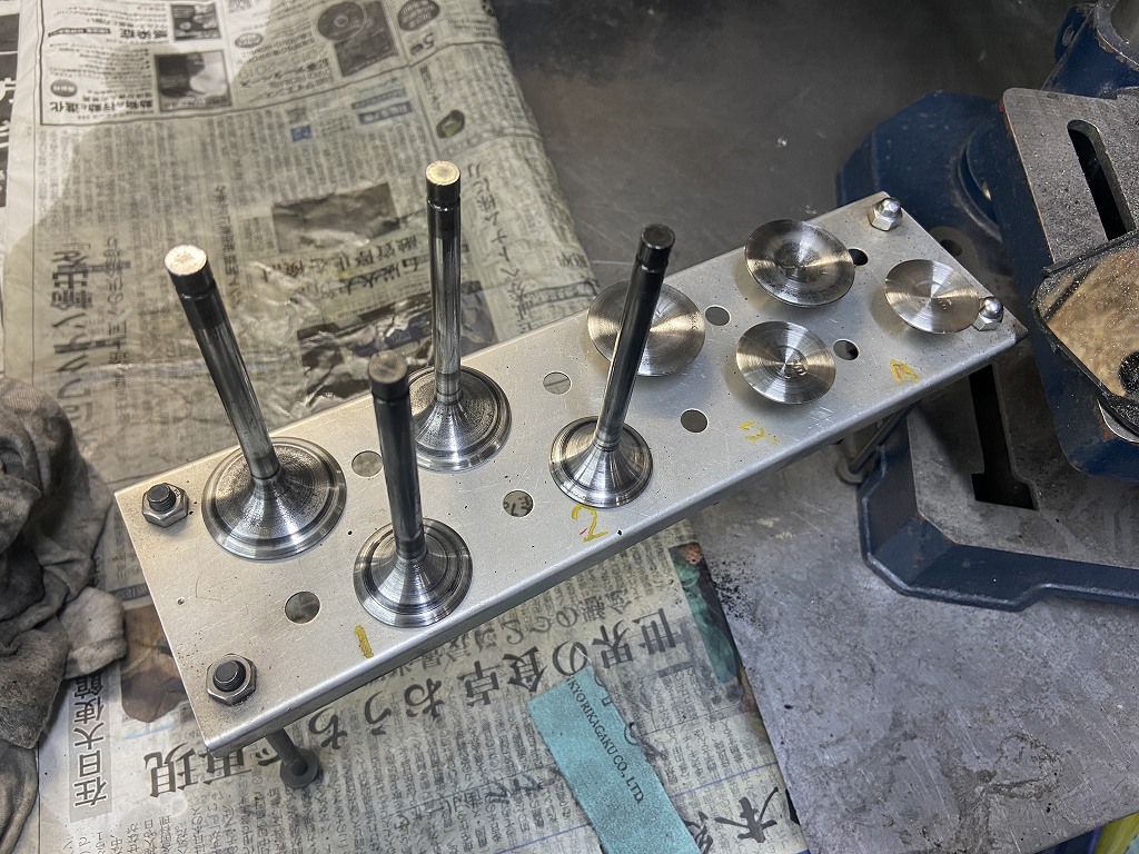 研磨したバルブを組付けます。スプリングなど主要な部品は全て継続使用です。