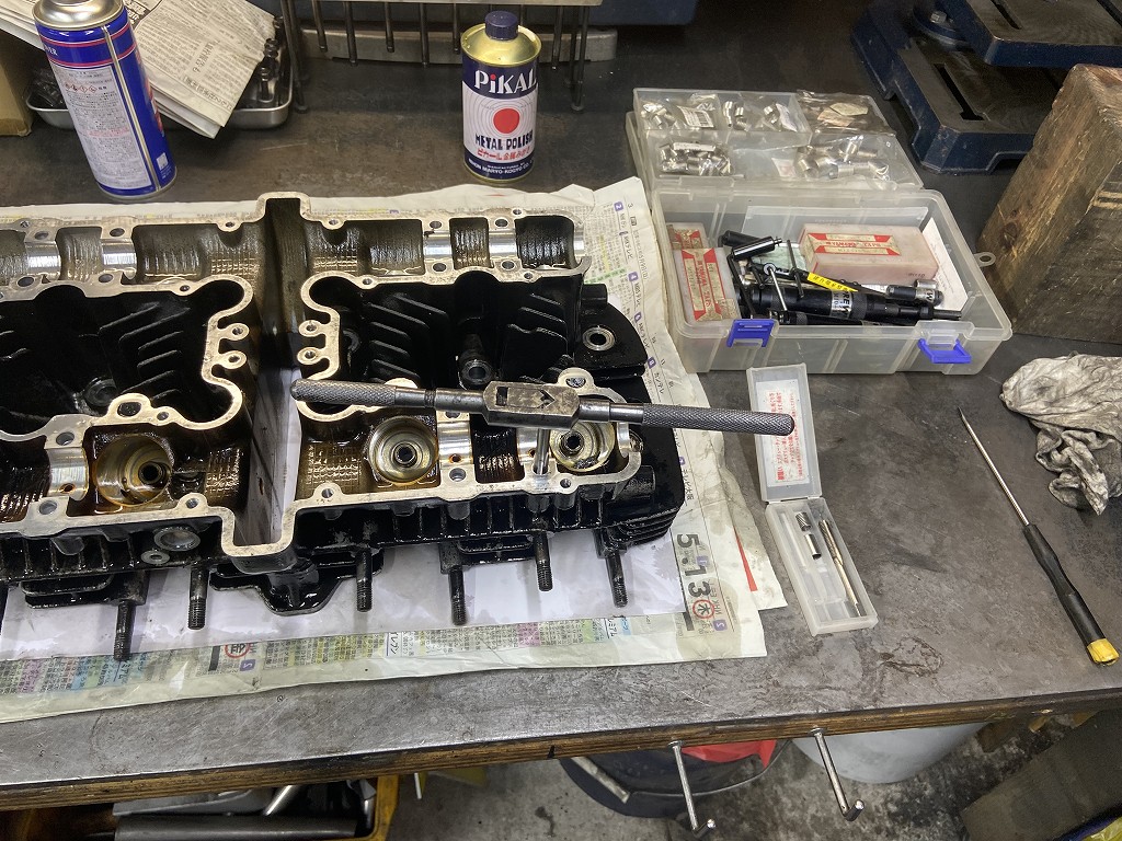 エキゾースト側8ヶ所全てにヘリサートを入れます。