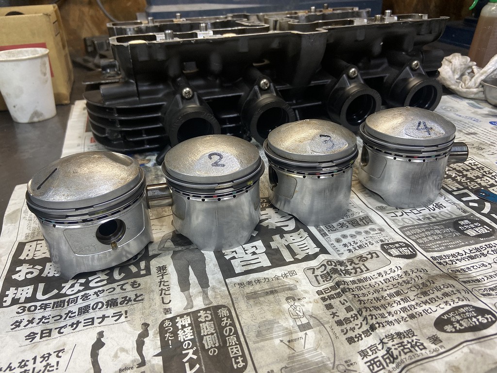 続いてピストンです。こちらも大きな問題はないので継続使用します。摩耗の多いピストンリングは、せっかく純正新品が買えるので新品交換しておきます。