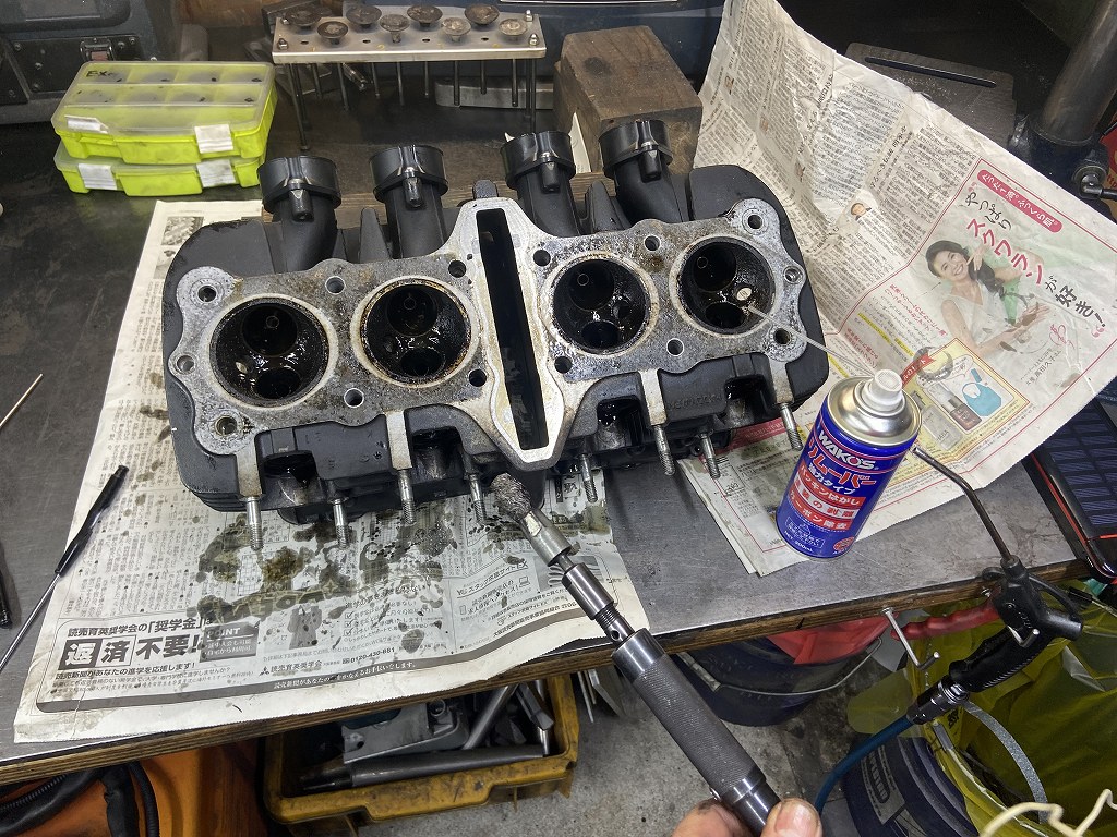 エンジン全体の様子から、走行距離は少ないと思えるので、このヘッドも大きな消耗はないと思われます。