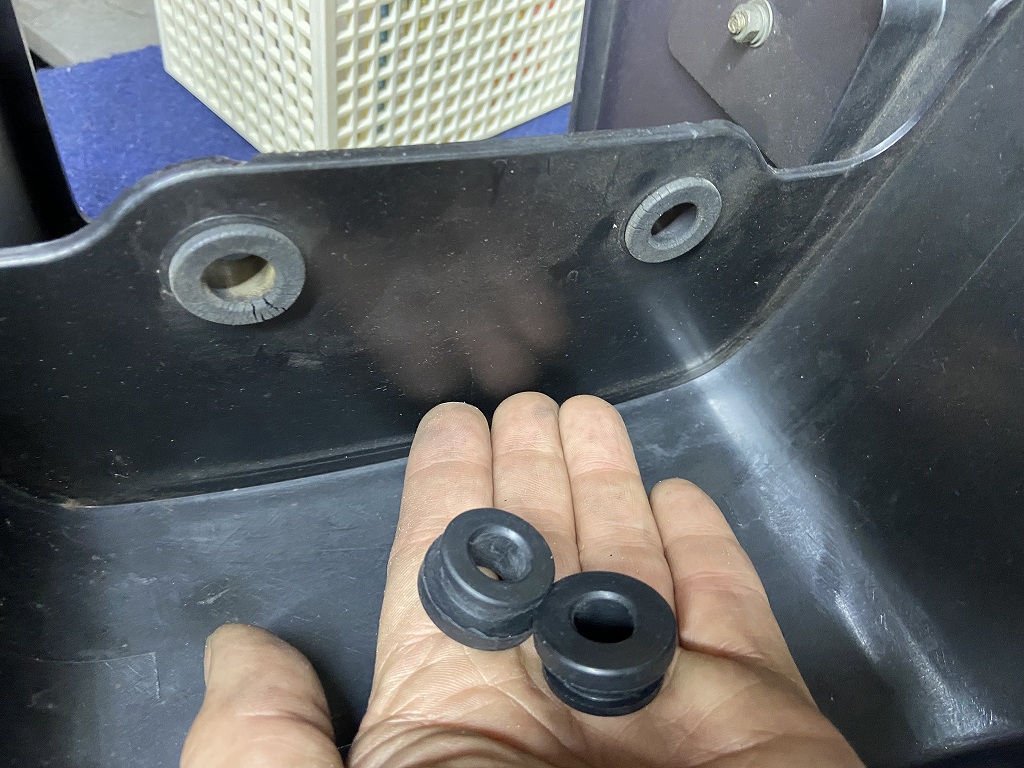 テールカウルのグロメットは、劣化しているので新品交換します。