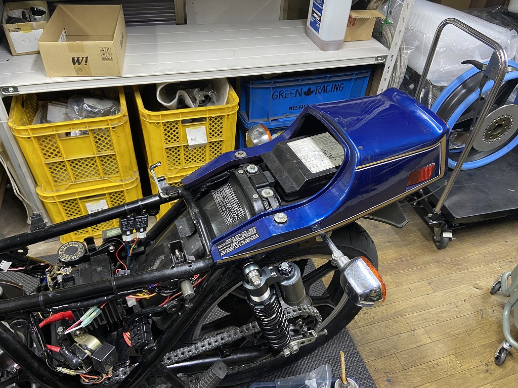 テールカウルと書類入れを取り付けます。