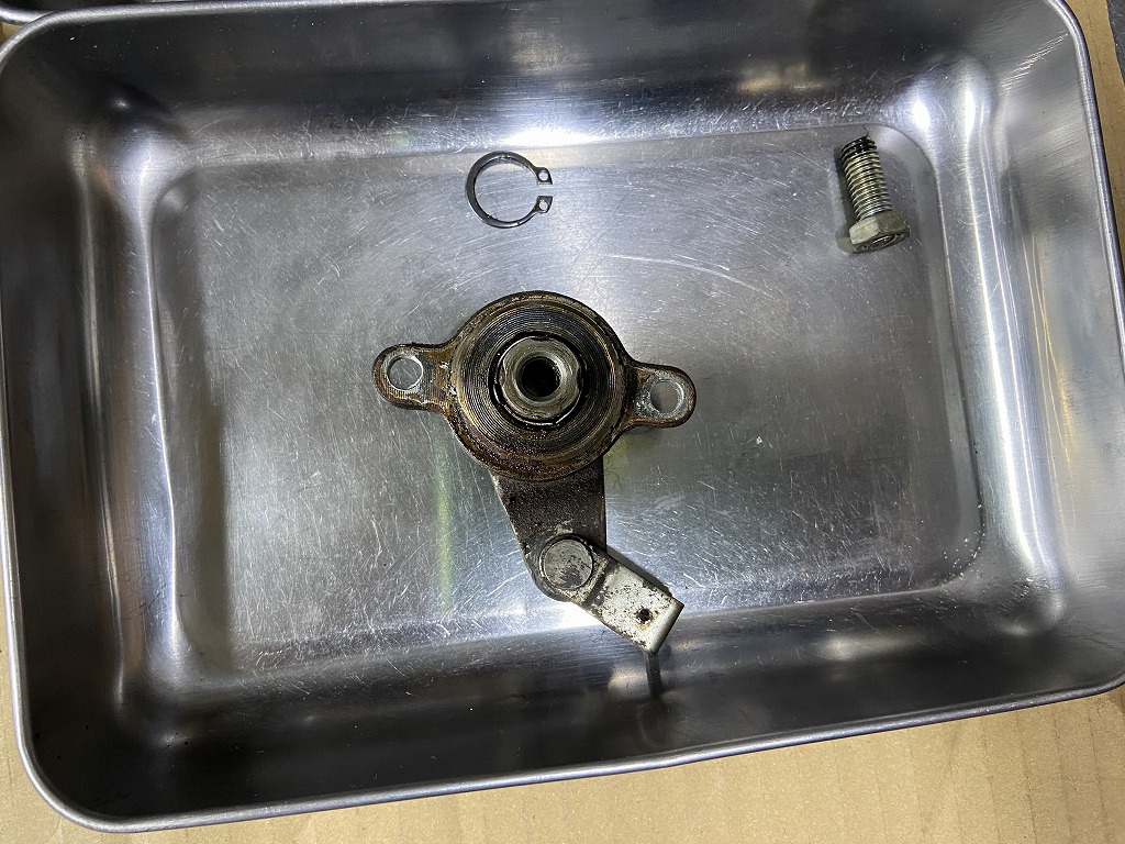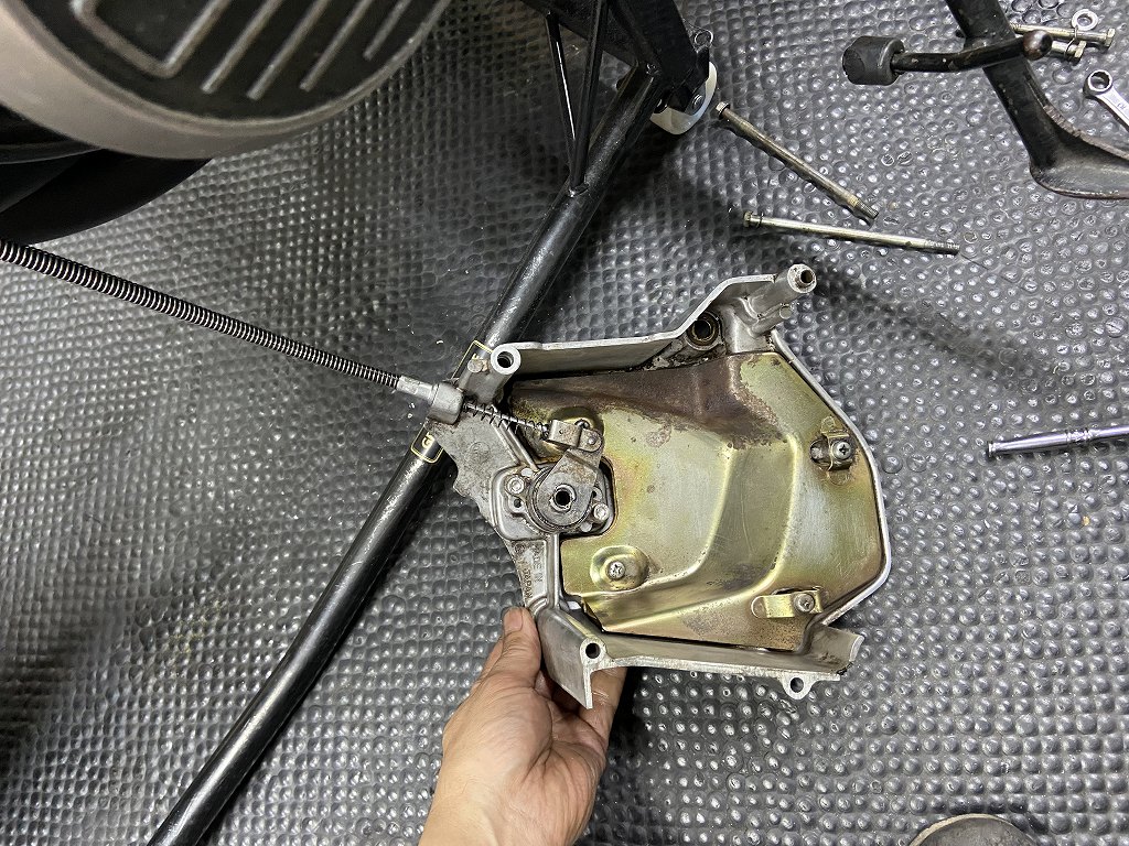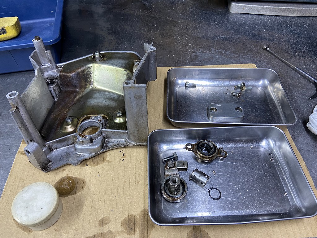 スプロケカバーです。クラッチレリーズはグリス切れしているようなのでオーバーホールします。