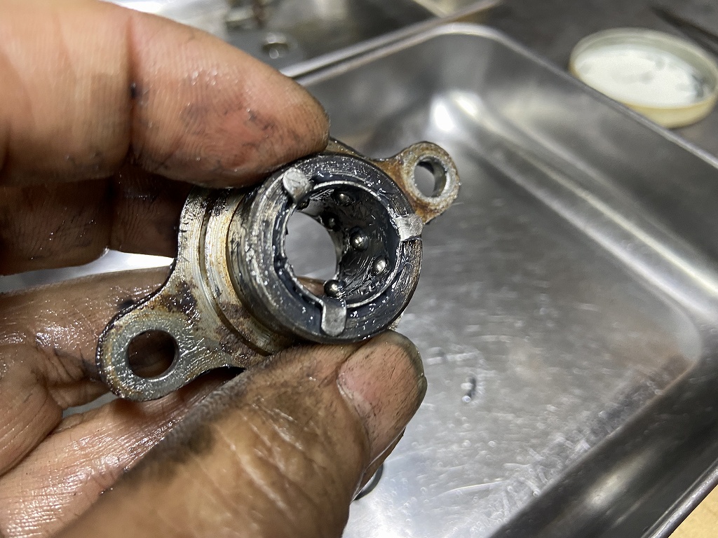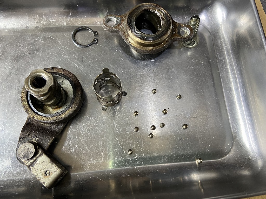 ベアリングを分解します。小さいボールは11個あれば正解。こちらは特に欠品はありませんでした。