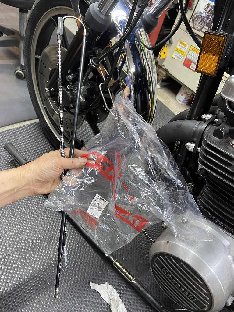 ハンドルがコンチハンとなり低くなったので、クラッチケーブルも少し短いものに変更します。使うのはZ1000Rと共通部品です。