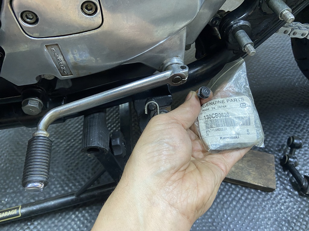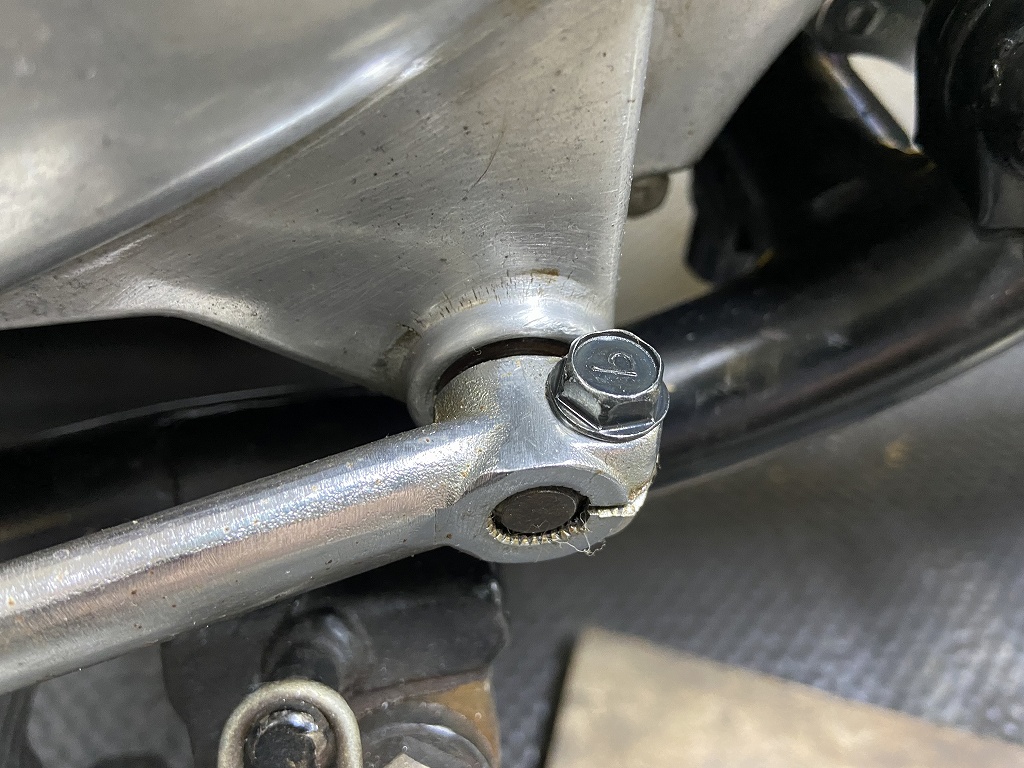チェンジペダルのクランプボルトは、ガタを発生させないよう締め付けトルクが高いので、純正で強度の高いボルトが使われています。Mk2純正はもうないのでこちらの1000R純正のボルトを使用します。