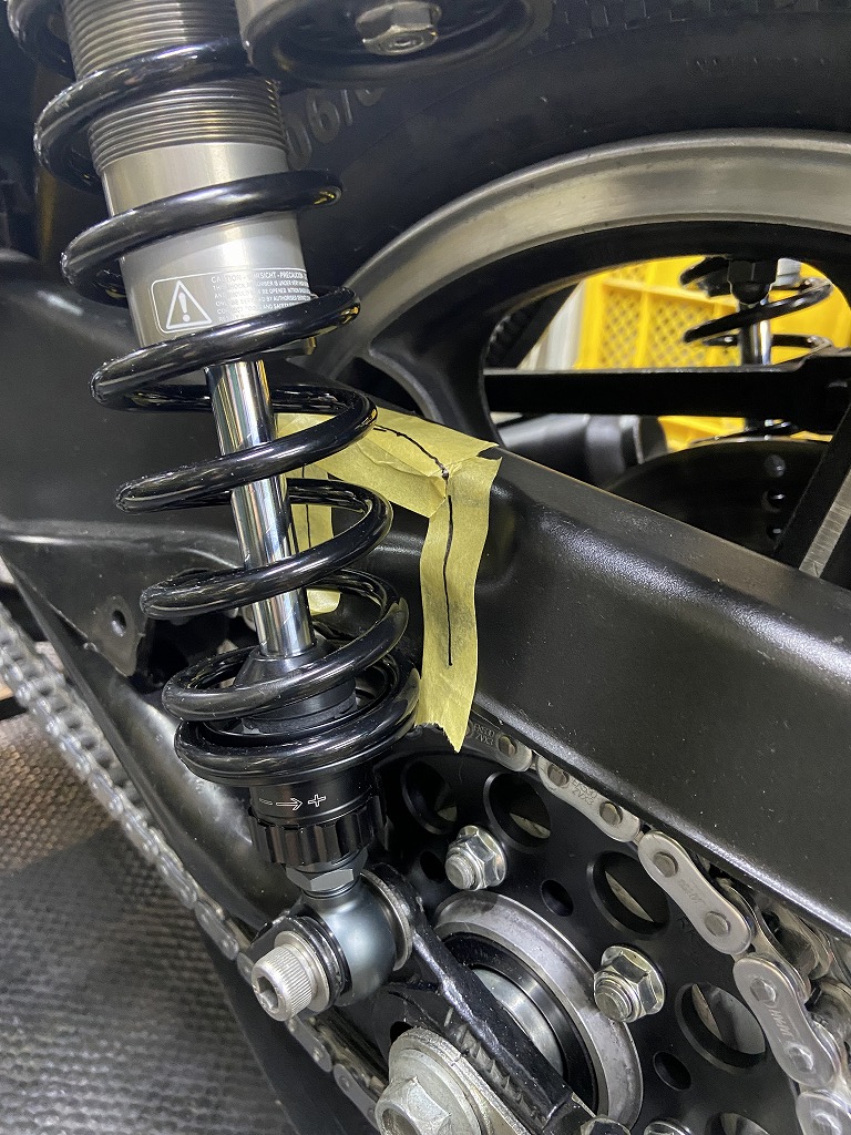 チェーンケースですが、スプリングが下の方まであるサスの場合は干渉するので切り欠く必要があります。カスタム車なのでチェーンケースは無くてもいいですね。
