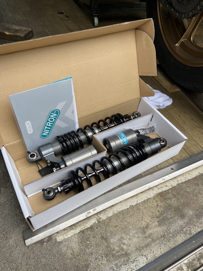 現在のYSSリヤショックの消耗に合わせ、かねてから検討していたナイトロンリヤショックに交換することになりました。